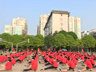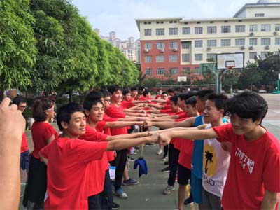 5月14日早上,我校初三全体同学由常务副校长兼初中部主任黄日梅亲自带队到南宁市沛鸿民族中学江南校区参加体育中考。同学们高举“超越自我”的班旗,满怀信心、精神抖擞地走出校门,在大家的“加油”和“祝福”声中登上大巴车,奔赴考场。
