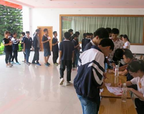 在南宁市2016年中考理化实验操作考试中,南宁市英华学校初三年级取得了通过率99.37%的优异成绩。根据本届初三学生学习情况,初三年级班主任和理化科任老师在部门领导的指导下,经过多次讨论,在以往经验的基础上确定了适合本年级学情的备考方案,特别加强了“夯实基础”的环节。利用考前两天时间,分多个批次,对学生进行细致入微的讲解和实验操作指导,采取了“检测——指导——结对子辅导——逐一过关”的方式。全年级221名学生,在短短的两天时间,实现了每个实验步骤的准确掌握,为理化实验操作考试取得好成绩打下坚实的基础。
