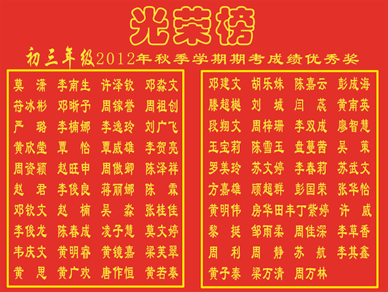 2012年度初中部获奖情况