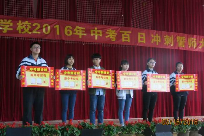 誓师大会在雄壮的国歌声中拉开帷幕,接着是学生代表、教师代表和家长代表分别在会上发言。他们在发言中表示,距离中考中只有短暂的一百天,它虽然不是人生的全部,但却是人生重要的一步。未来,也许因这一百天而改变,今日的汗水,将会催开明日灿烂的花朵,将会书写人生华美的篇章。因此,我们要珍惜这一百天,努力奋斗一百天。在这一百天中,要讲方法,讲效率。掌握好学习规律,概括好知识要点;解决学习问题,挖掘学习潜力,拓展进步空间,使每个同学增强中考收获的希望。在这一百天中,要树立起必胜的信心,要有坚持不懈、顽强拼搏的斗志。中考前的复习是苦的、累的,但经历了风雨的洗礼之后,六月的阳光将会因我们的努力而更加灿烂。