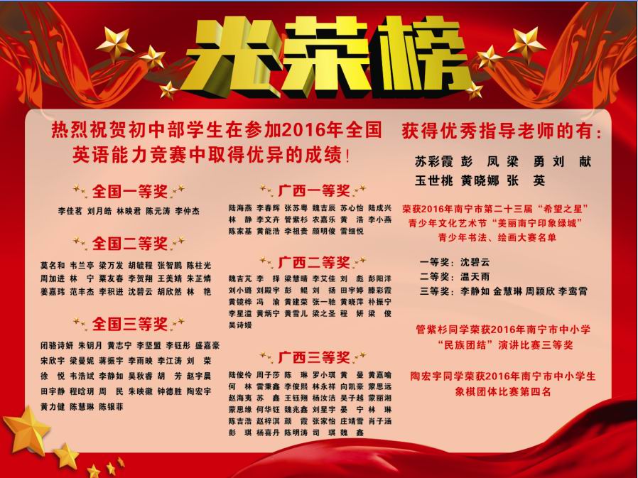 广西示范性普通高中|民办教育先进集体|示范高中特色学校|常规管理示范学校|南宁市民满意学校