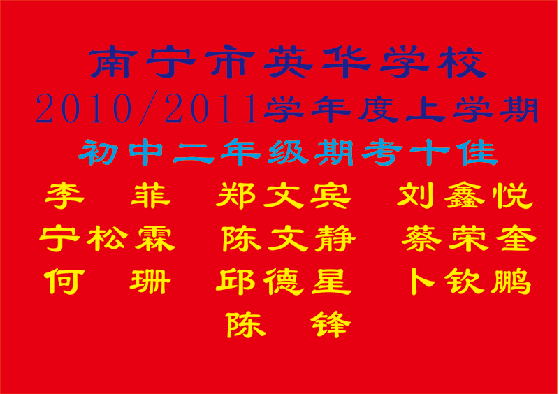 2010-2011学年度上学期初二期考十佳