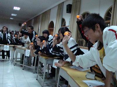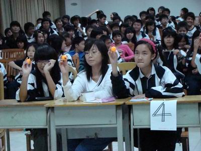 2008年11月4日傍晚,初中部初一、二年级全体同学齐集小学部多媒体报告厅,他们在老师的组织下,或进行英语知识抢答、或集体向容器投掷并不太听话的乒乓球,一一而乐,书写了一个趣味浓浓的课余。