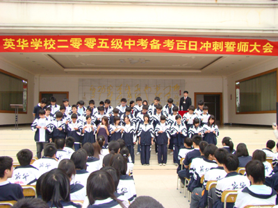 3月14日下午,初中部全体师生齐集一堂,庄严肃穆的氛围,初三年级同学铮铮有词的宣誓,让在场的初一、初二学弟学妹们油然而生敬意,在进入中考百日冲刺的日子里,我们的初三年级同学已然成长了许多,他们都为自己立下了一个目标,并展开冲刺,我们相信,百日后的考场上,定有英华学子胜利的凯歌。