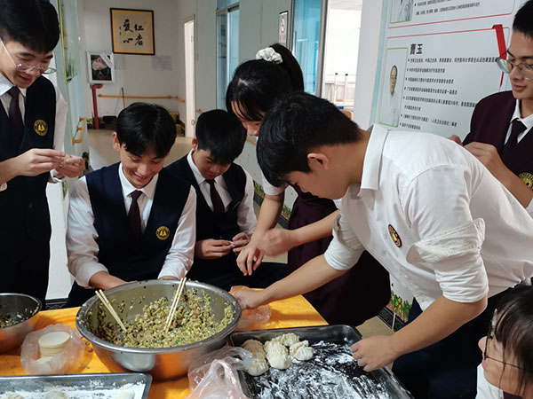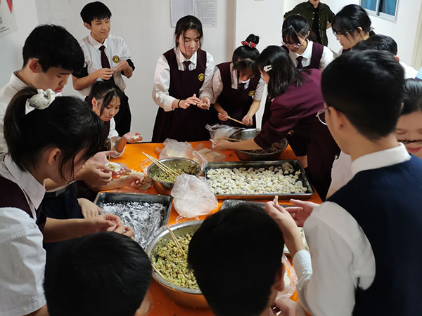 表演结束后,同学们与工作人员一起包饺子和云吞,为老人们准备美味的午餐。