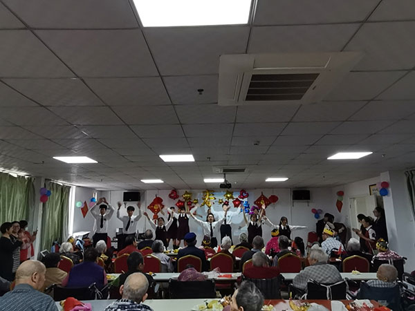 此次活动同学们还精心准备了歌舞表演,拉丁舞、电子琴弹唱《鲁冰花》、歌舞串烧、古筝独奏《女儿情》、诗歌朗诵《诵重阳》给老人们带来欢声笑语,陆强华校长一曲《滚滚长江东逝水》将现场氛围带到了高潮。