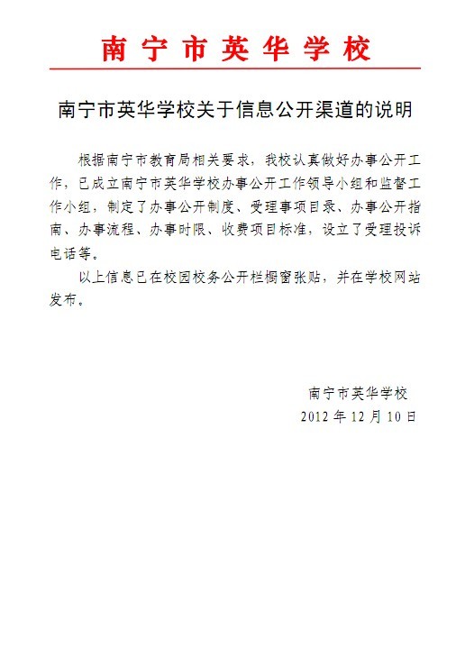 南宁市英华学校关于信息公开渠道的说明