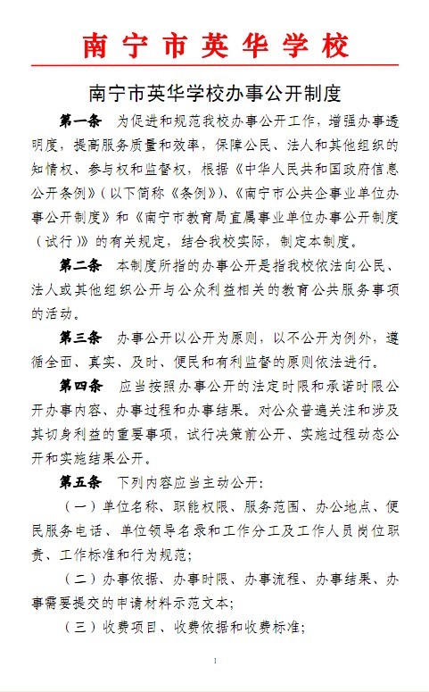 南宁市英华学校办事公开制度
