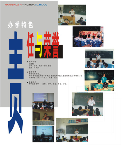 针对不同阶段学生年龄特点落实校训,并进一步细化,制定的英华学校“责任与荣誉”教育常规和英华培养“小学生良好行为习惯十要十不要”、培养“初中生荣誉感十要十不要”、培养“高中生责任行为十要十不要”进一步深化、开展。