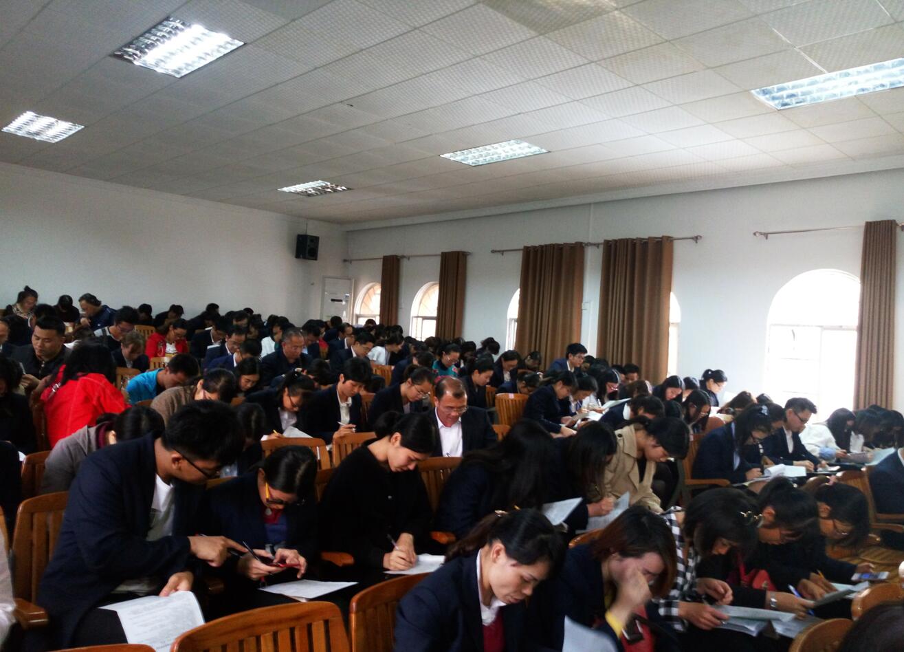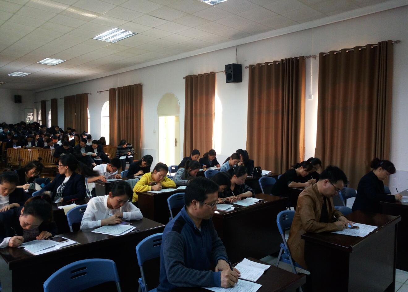 教师们认真填写试卷,一丝不苟的学习态度体现了我校教师良好的师德师风。
