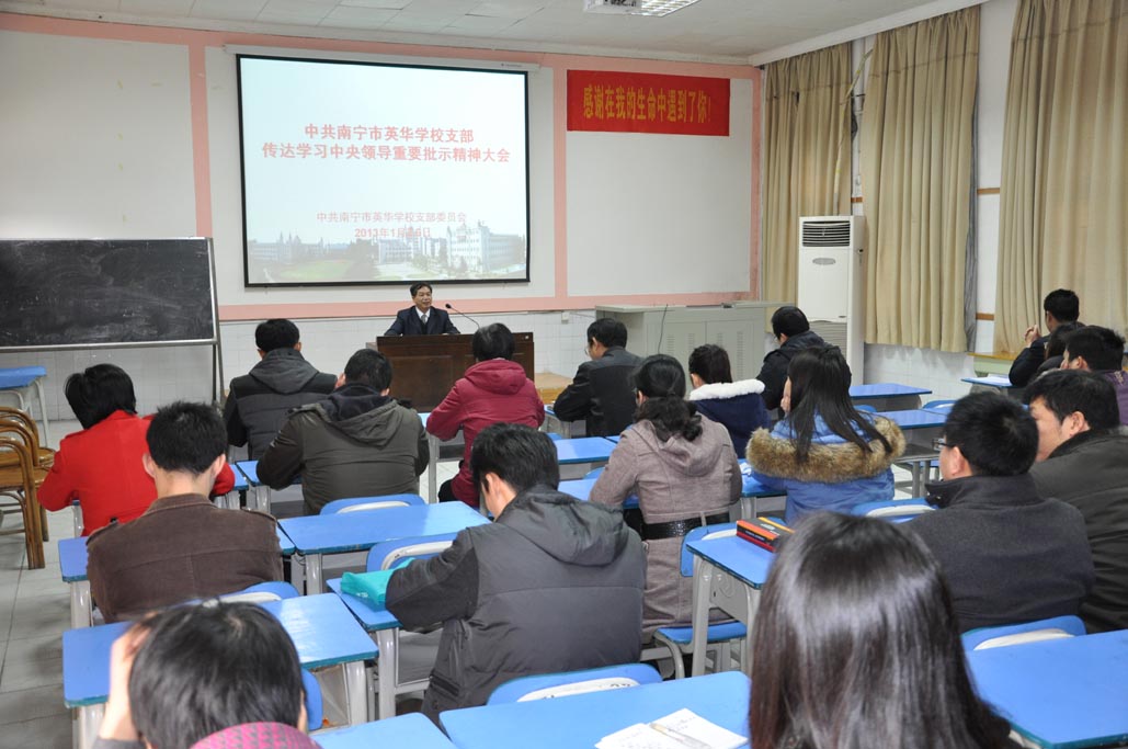 2013年1月24日上午,我校党支部副书记劳以东召开各支委、党小组组长会议,传达1月23日上午大沙田街道传达学习中央领导重要批示精神会议的精神。