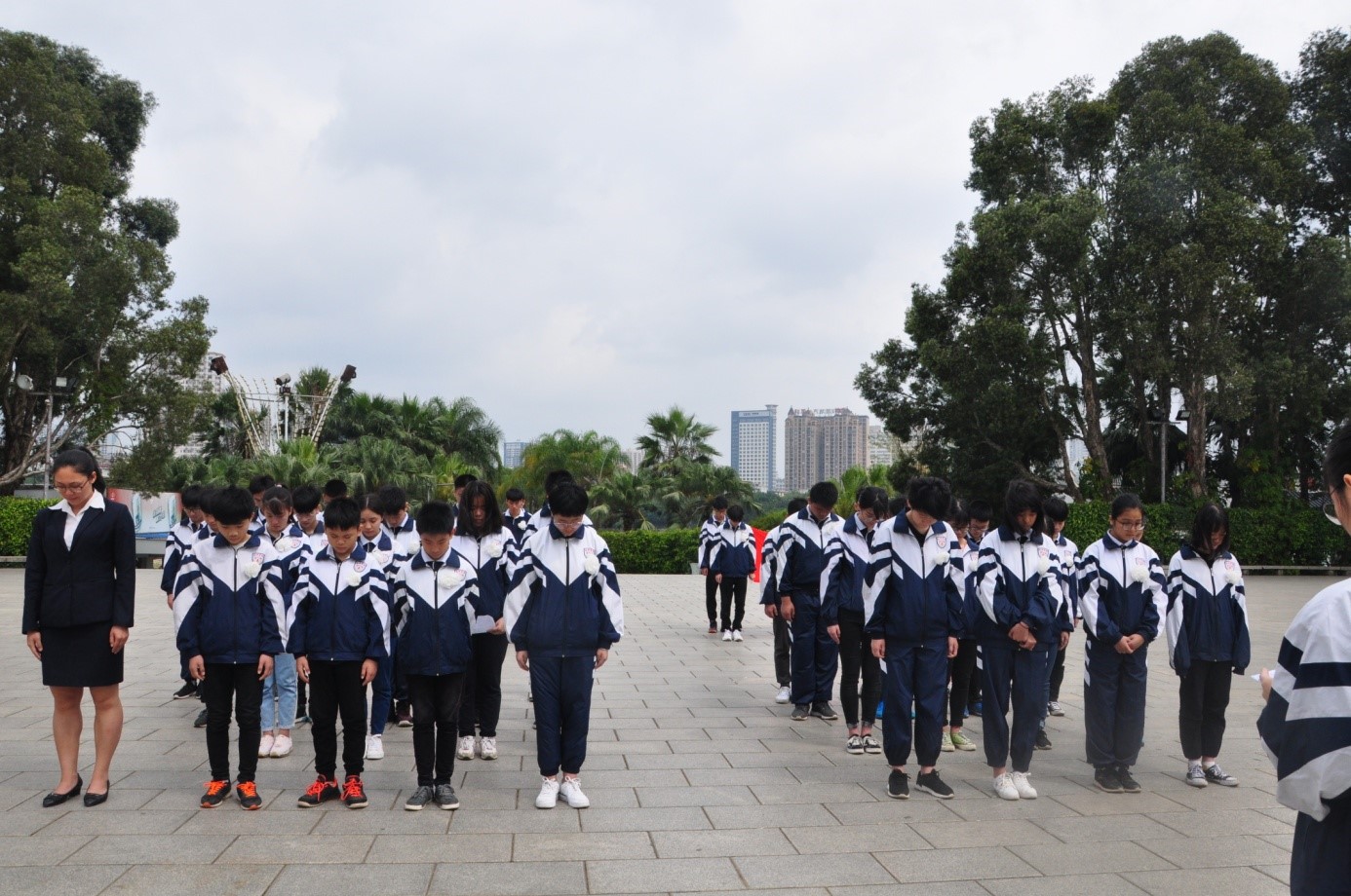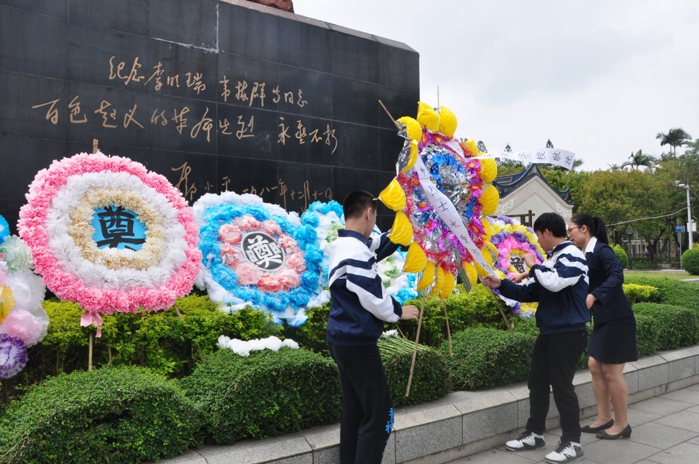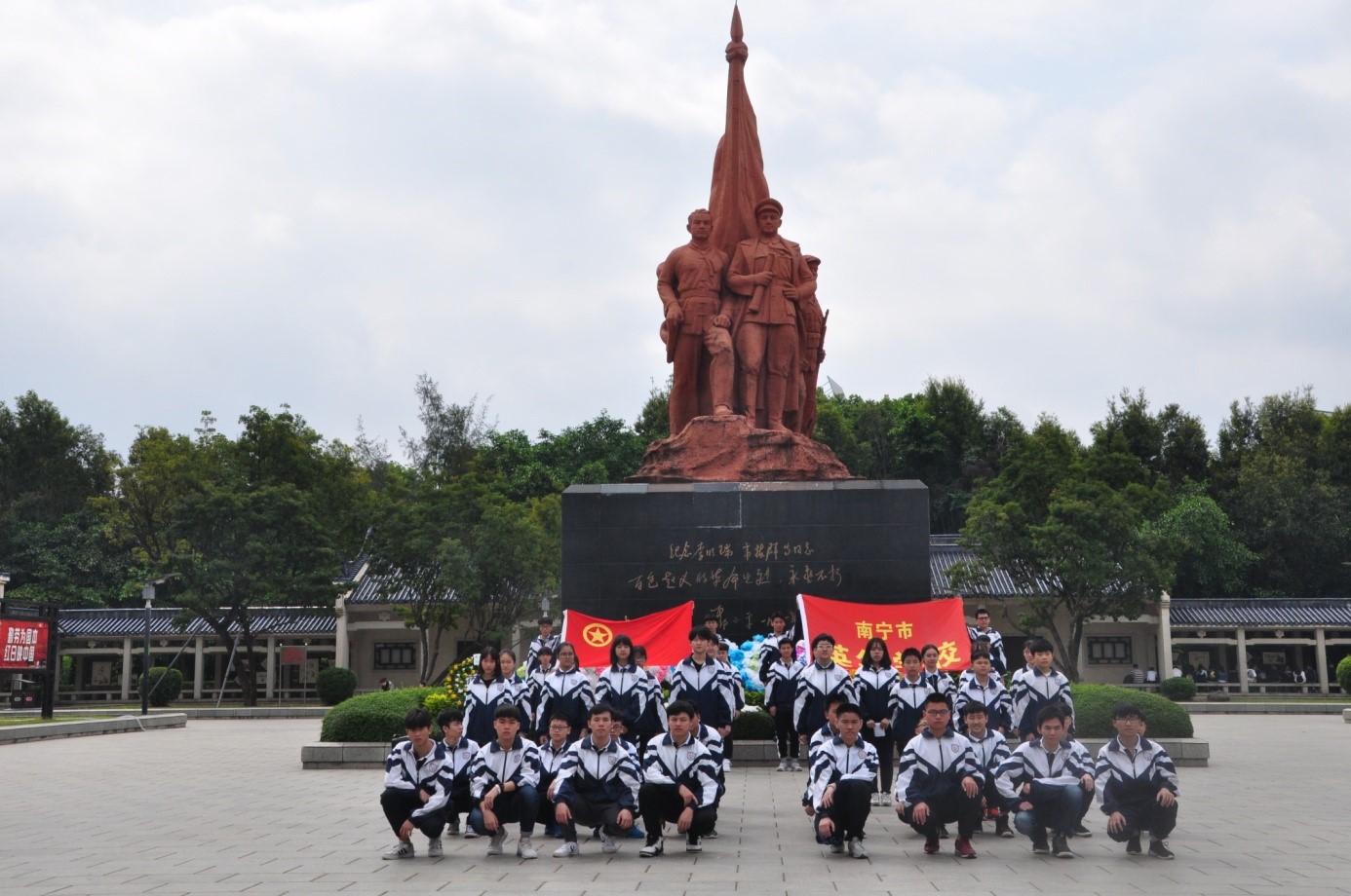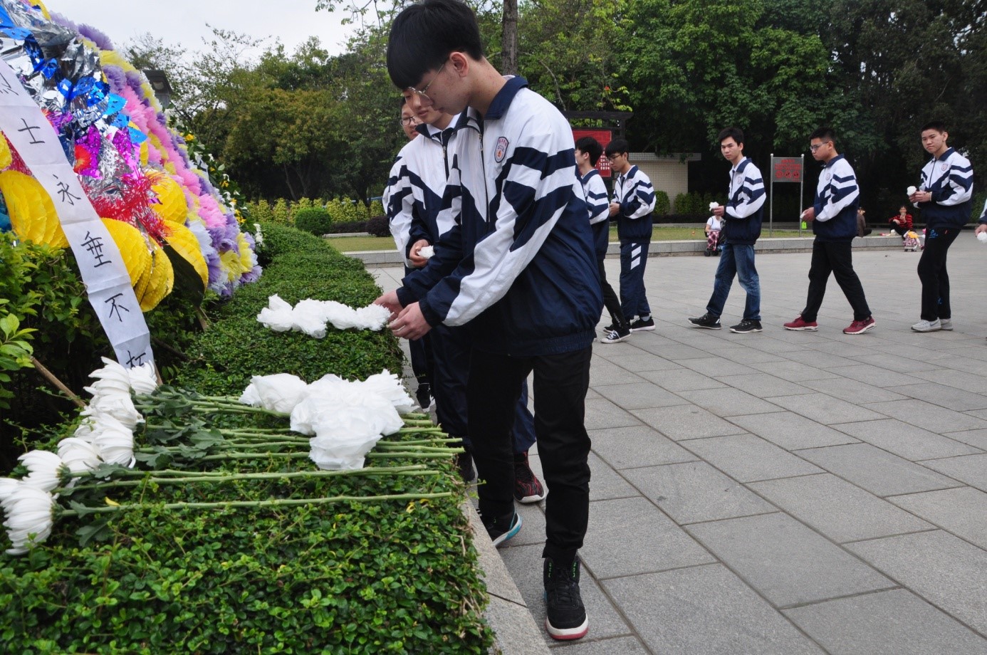 为了加强学生的思想道德教育和革命传统教育, 4月10日上午,在学校和初、高中部的大力支持下,我校团委书记韦雪老师、初中部团组织负责人梁文芳、谭倩老师带领初、高中部团员学生代表共42人前往南湖公园开展祭奠革命烈士。