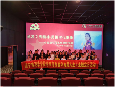 10月22日下午,南宁市英华学校党支部组织教职工党员及入党积极分子开展观影《秀美人生》主题党日活动。