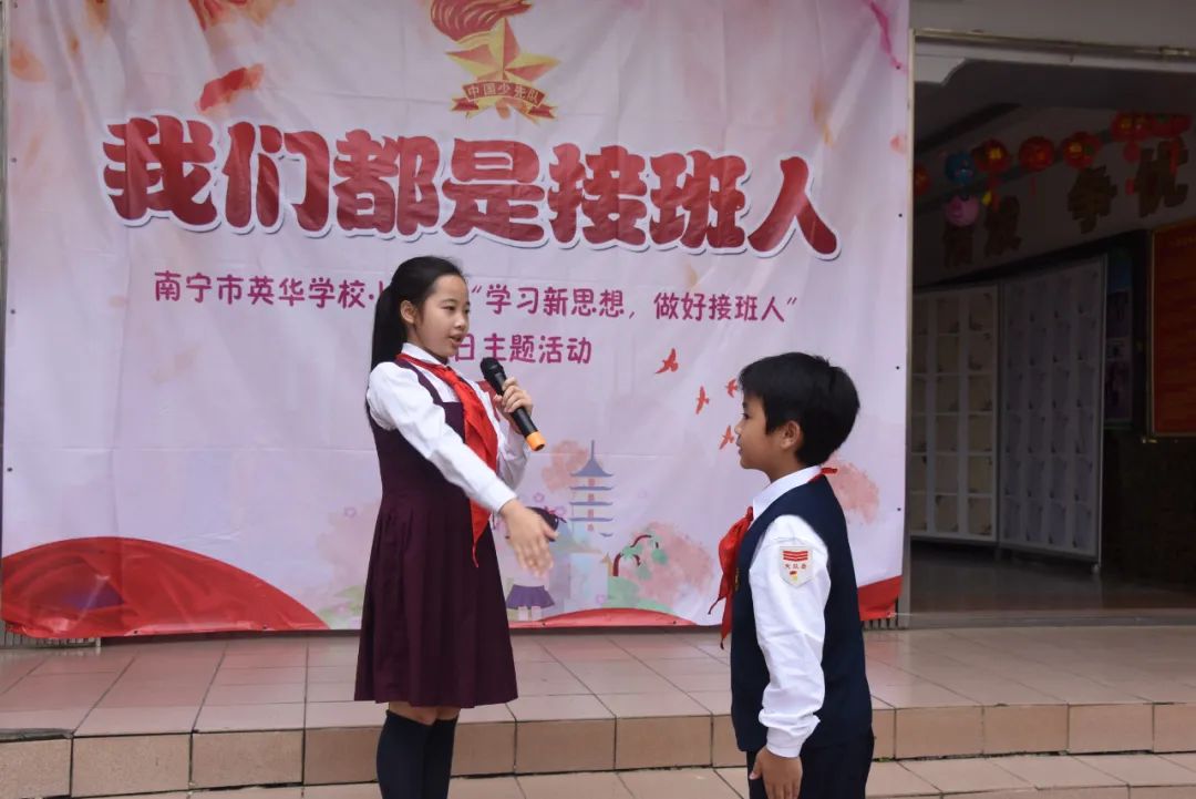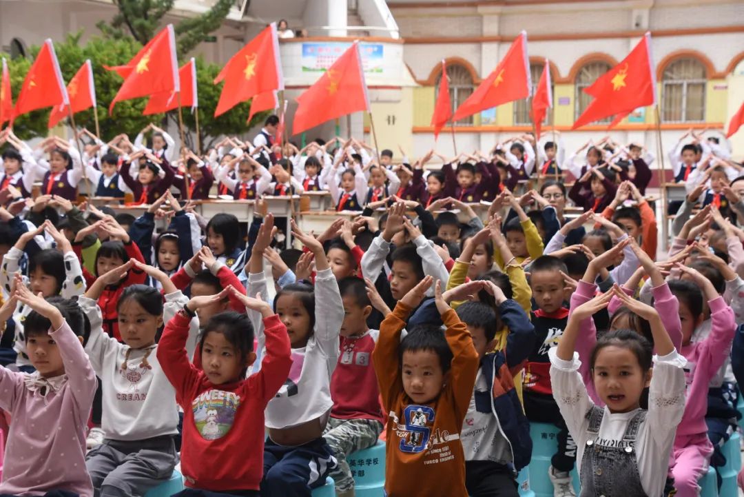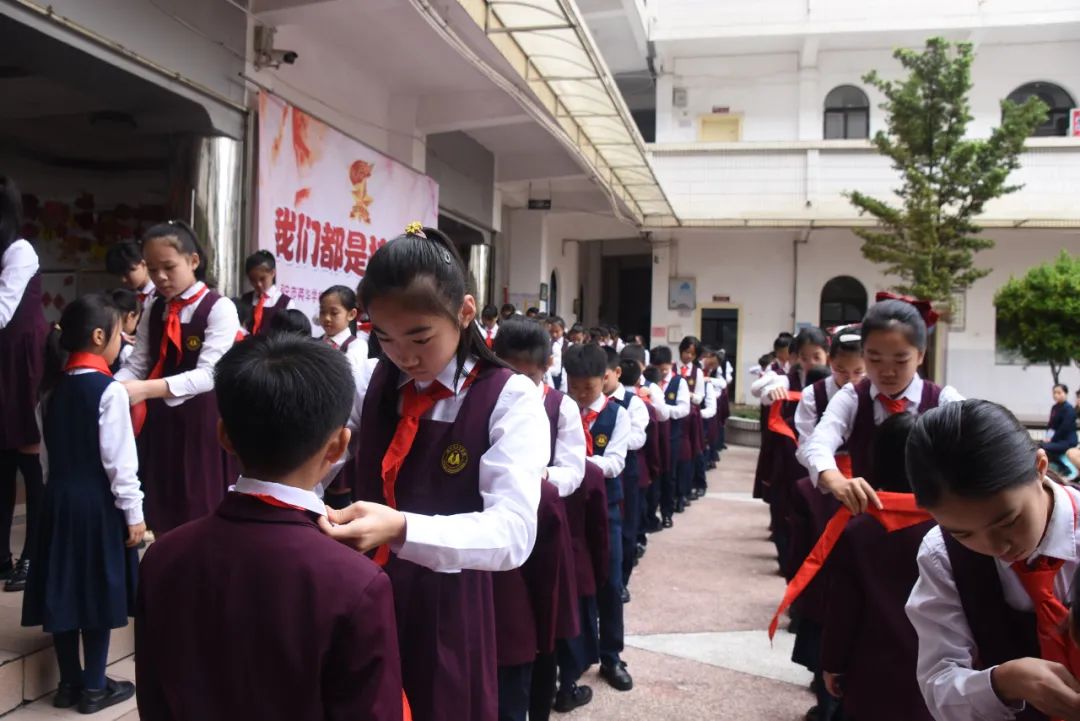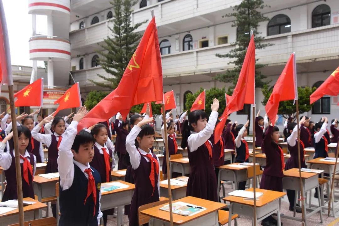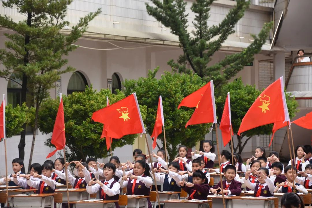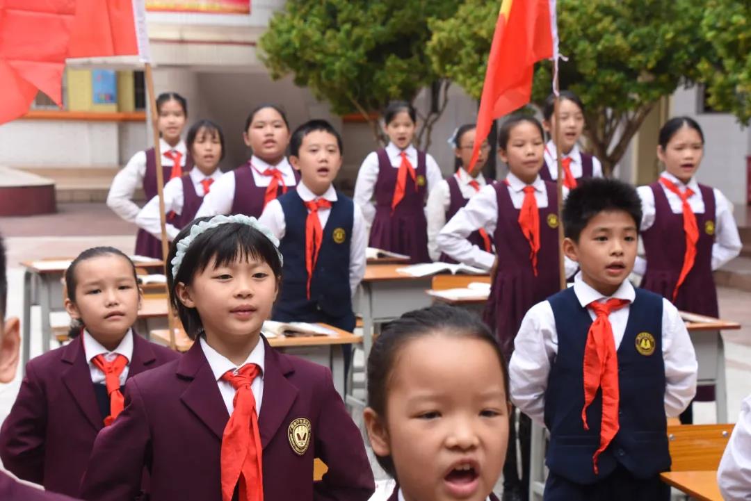 为庆祝中国少年先锋队建队71周年, 10月16日,我校小学部开展了“我们都是接班人”建队日活动。星星火炬闪耀着金光,火红的队旗高高飘扬,全体师生及家长代表在张璇老师的指挥下齐唱《中国少年先锋队队歌》,歌声中饱含着对党和国家的热爱之情。