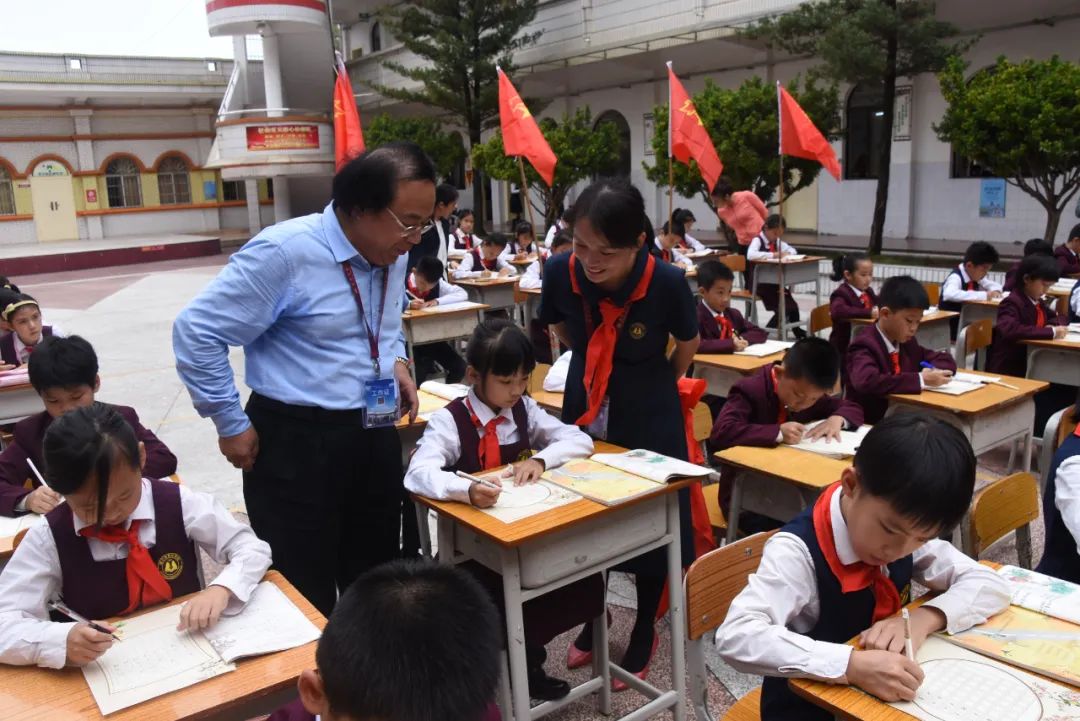 写好中国字,做好中国人。在全体师生高声齐唱《中国字 中国人》中,现场小小“书法家”们展示硬笔书法。