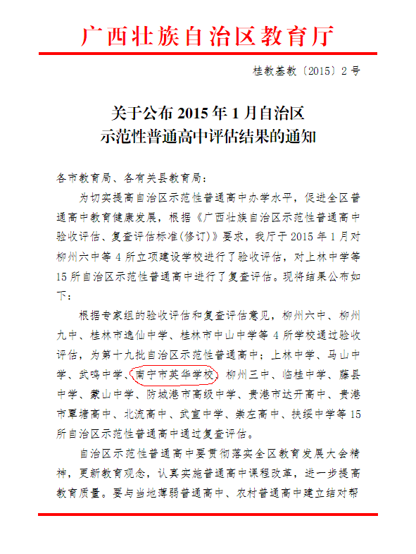 热烈庆祝南宁市英华学校通过自治区示范性普通高中复查评估