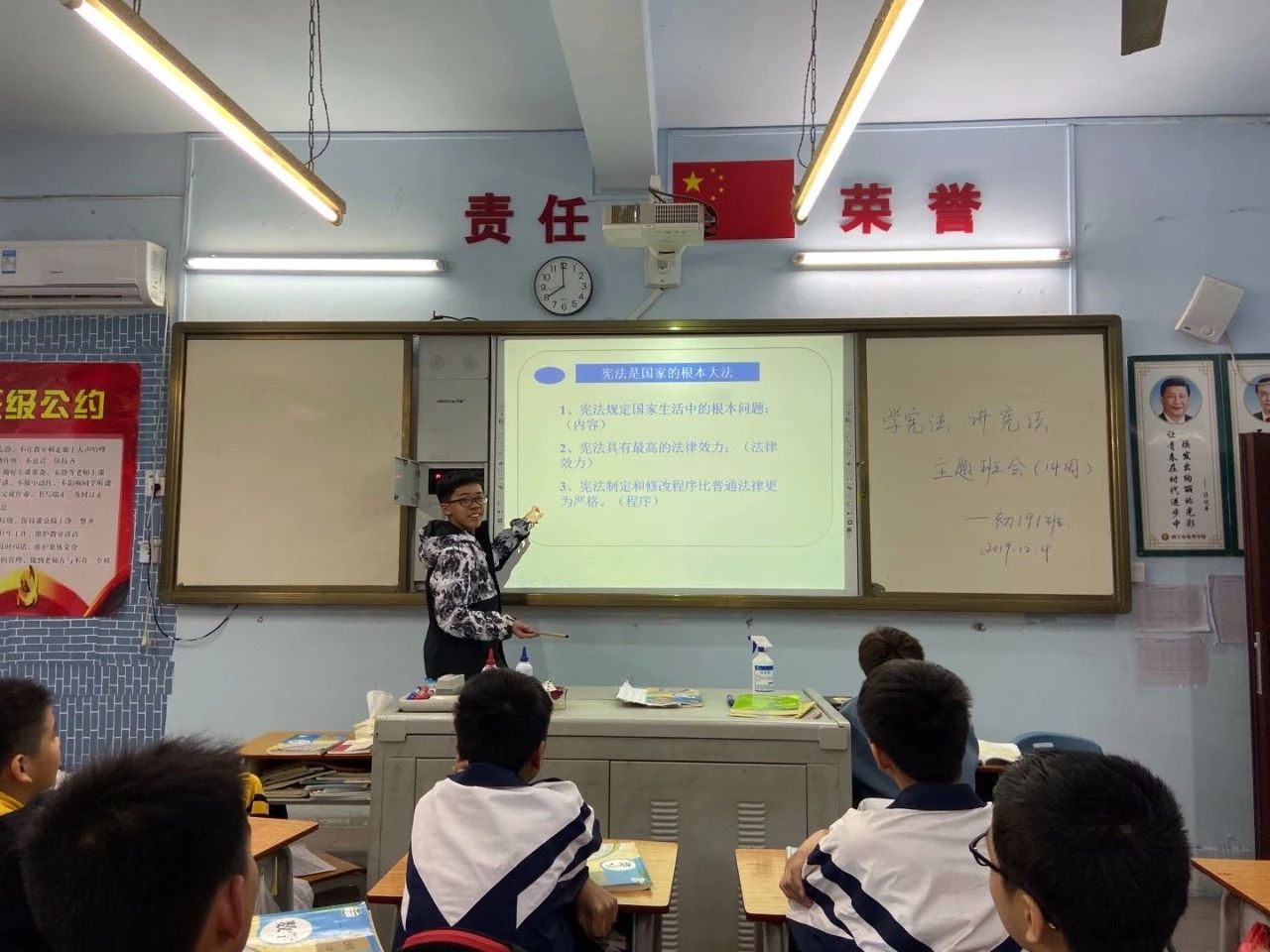各班以《学宪法讲宪法》为主题召开班会,通过晨读宪法,提高法律意识和自我防范能力。