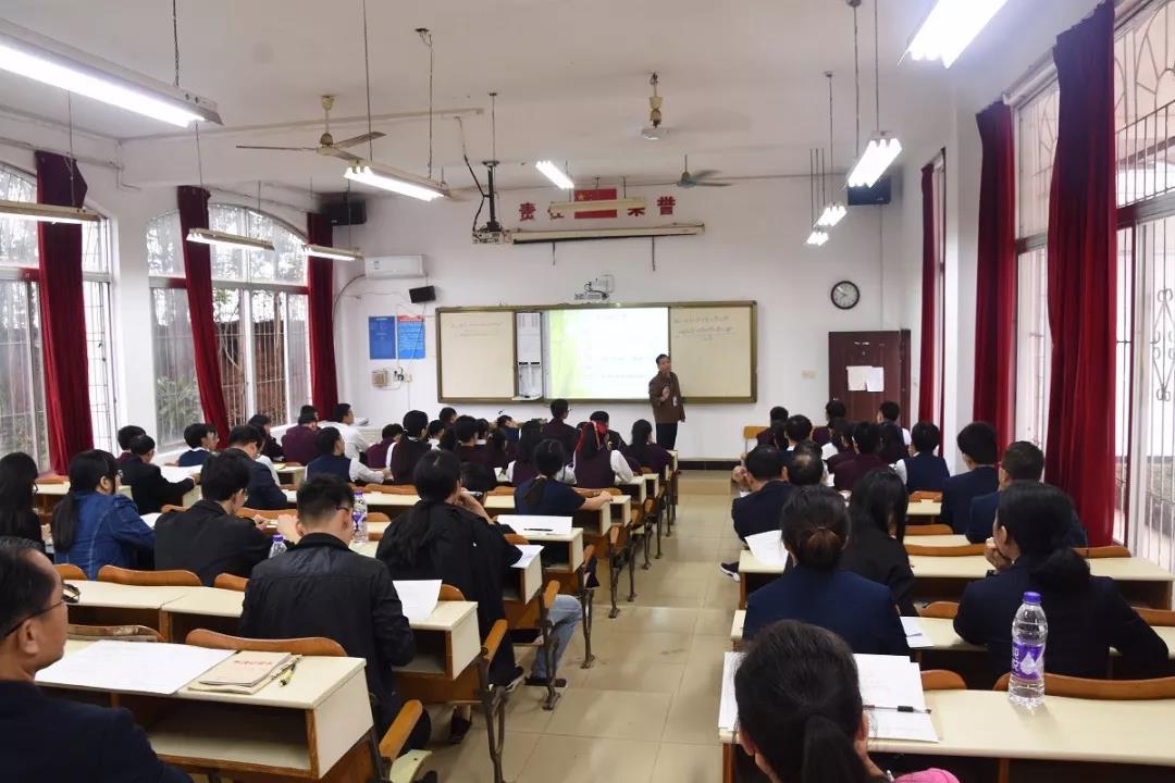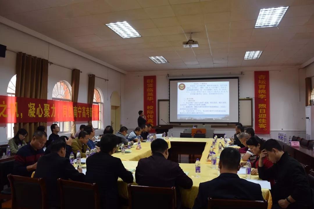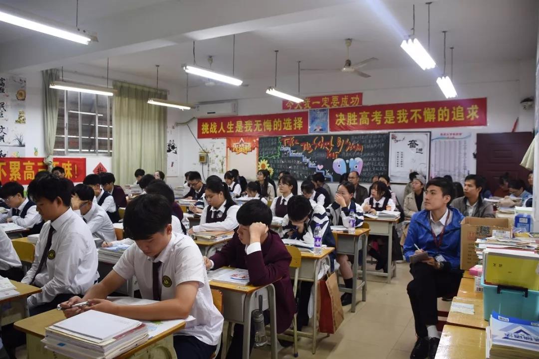 市教育局杨捷副局长对我校的备考工作也给予较高评价:英华学校的气象有改变,走进校园让人感觉很舒服。学校定位较好,管理严格,备考目标明确,各项备考工作跟上南宁市高考的节奏,跟上南宁市改革潮流和步伐,体现学校有担当,体现了较高的政治站位,有奋发向上的精神。他在讲话中强调,各学校的备考工作要有自己亮点和特色,要有奋斗精神,管理要精细,找到学校自己发展之路,要注重培养学生的家国情怀,学生具备宽广的胸怀,才能得到健康的发展。
