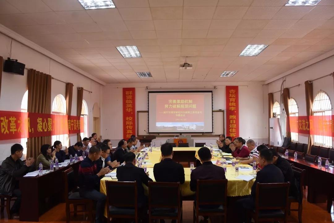 在领导座谈会上,潘嘉智副校长就我校2020届高考备考工作做了汇报,陆强华校长做了表态性发言。我校高考备考工作紧张有序,管理做到精细化,教学精准化,落实目标责任制——目标到班、到人。学校管理堵和疏并举,师生精神面貌良好,师生统一校服令人震撼。市教育局领导、市教科所领导、各兄弟学校领导对我校的校容校貌和师生的精神面貌、备考的各项工作、以及备考的思路和做法等给予了充分肯定和高度的评价。