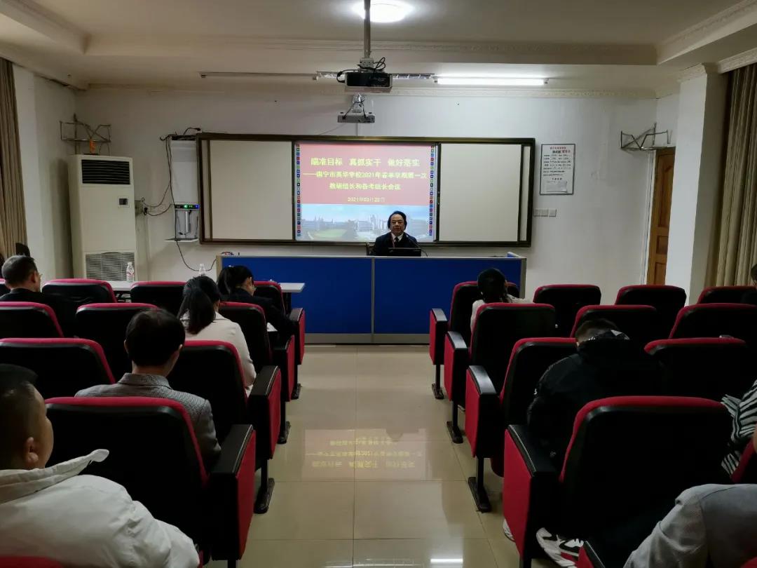 会上,陆强华校长分享了南宁十四中数学教研组开展教研活动的一些做法,对我校教研组的建设提出了指导建议。陆校长强调,教研组长要发挥学科带头人的作用,担负起学科教研组的建设职责,形成校本的研究模式;要善于运用好有效的评价机制;处理好个性与共性、协助与竞争的关系,优势互补;活动和教学研究都要明确主题和内容;做好“五育并举”育人方式的创新实践——学科教学要切实落实好“立德树人”的目标。
