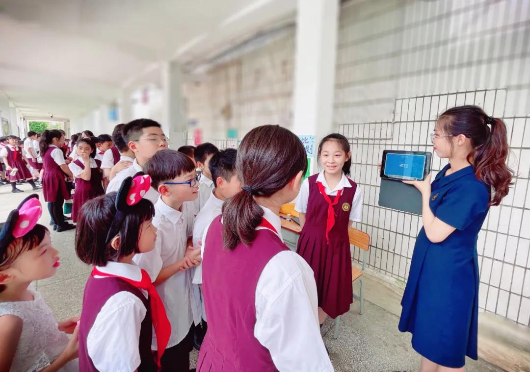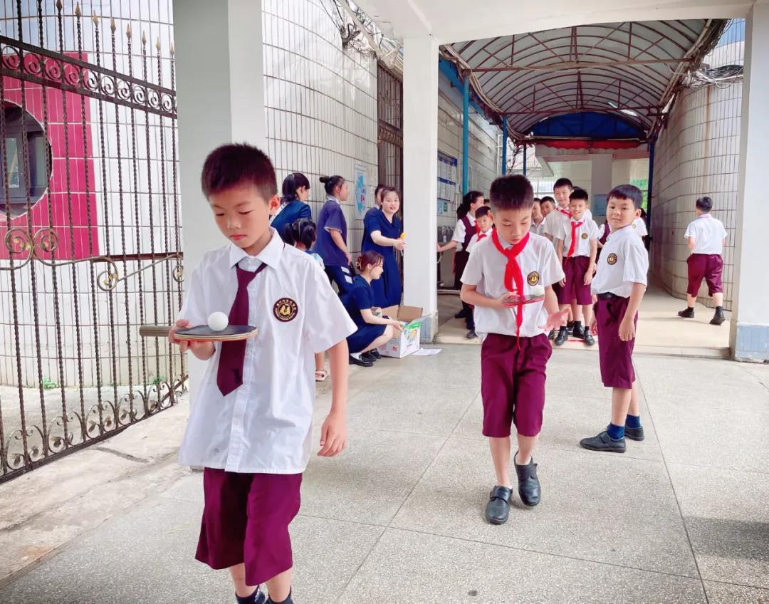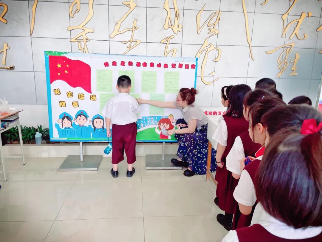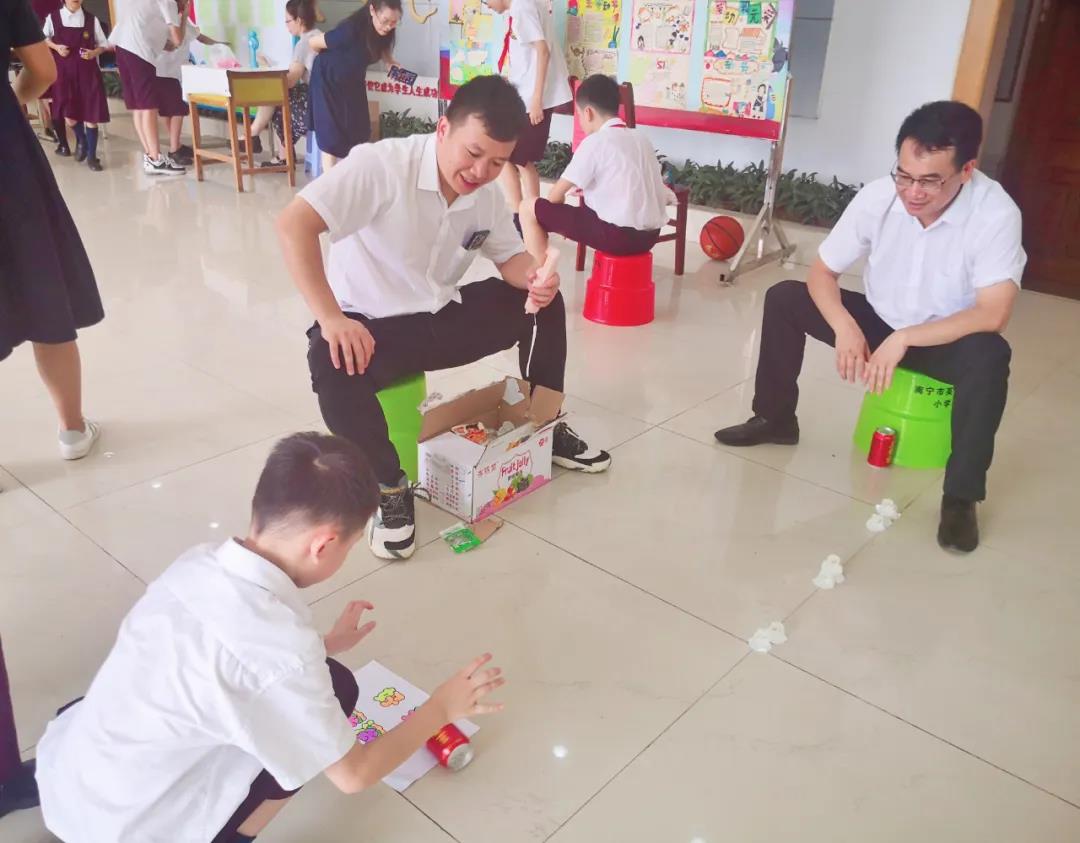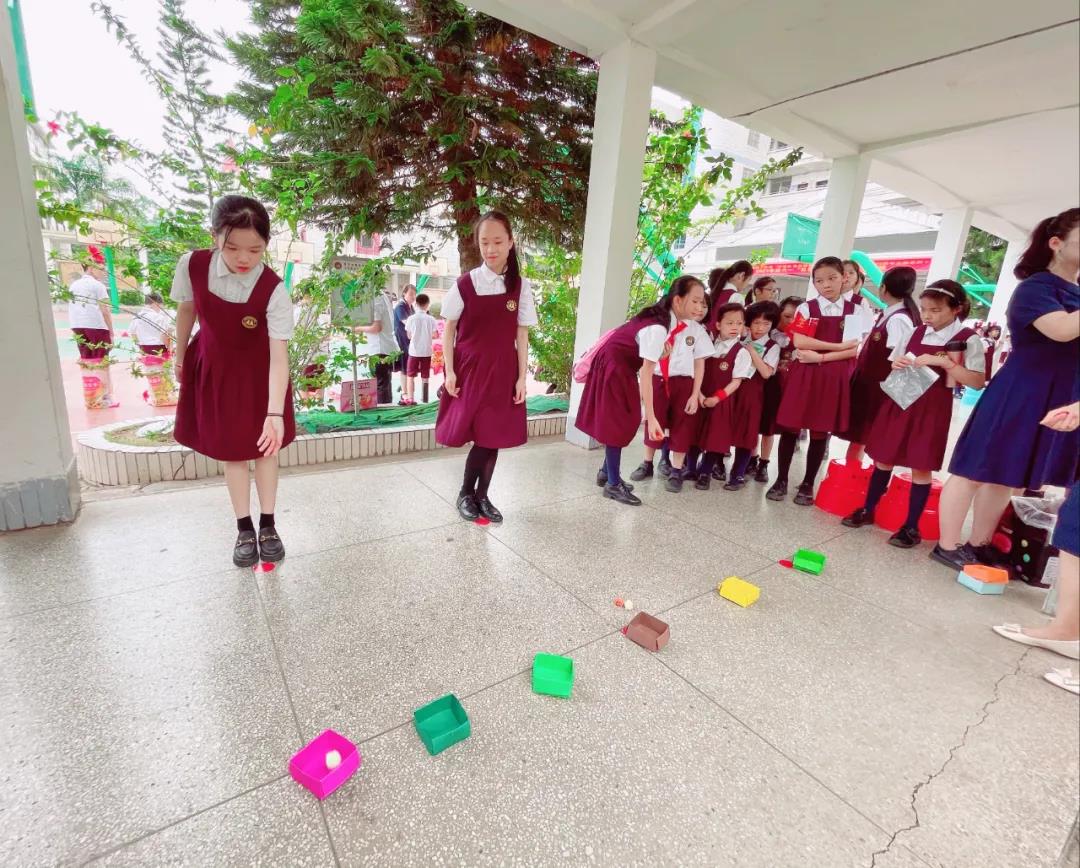 主题大队会结束后,紧接着就是学生期待已久的游园活动,整个校园仿佛一片热闹的海洋,投壶、夹玻珠、掌上乒乓球考验学生的协调能力;背对背夹球、你比划我来猜、两人三足考验同伴之间的默契;党史知识趣味问答让学生们对党有更深的了解;“红领巾畅游南宁”则模拟在小导游的带领下,了解南宁好玩、有趣的景点,让红领巾们更热爱我们这座美丽的绿城。