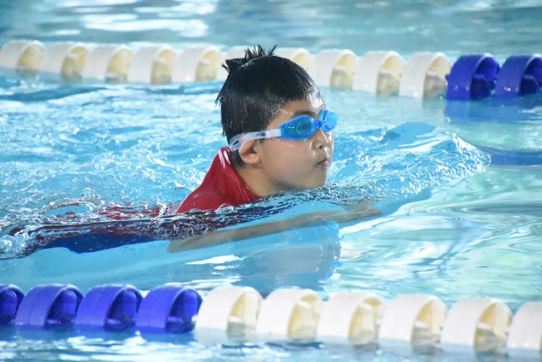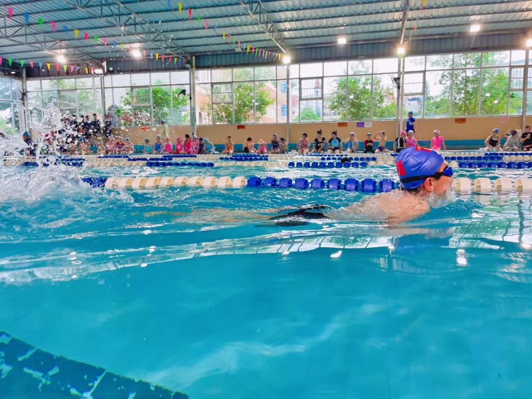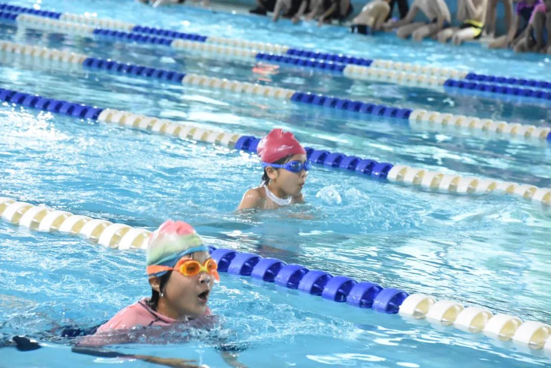 下午14时40分,学校游泳馆热闹非凡,小学部游泳健将们蓄势待发,随着陆强华校长的宣布,第六届游泳锦标赛正式开始。只见参赛小选手们个个劈波斩浪,一展风采。