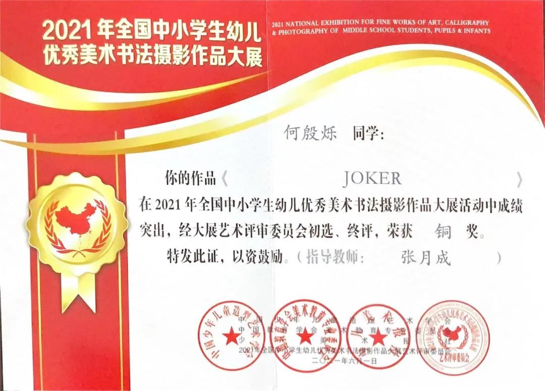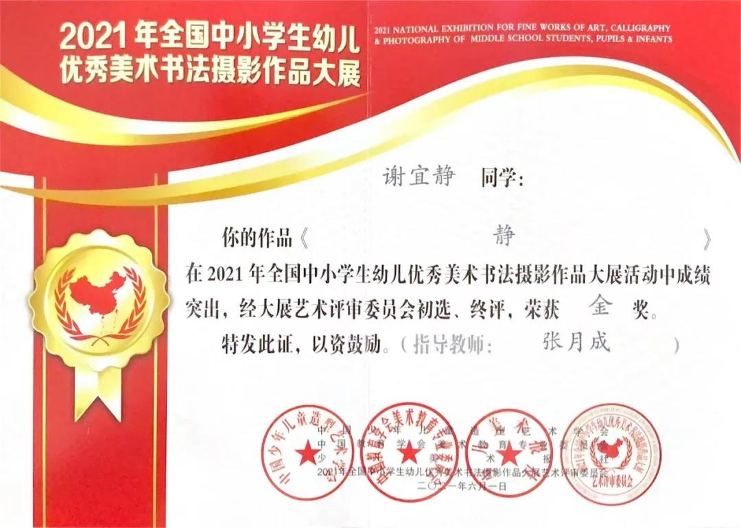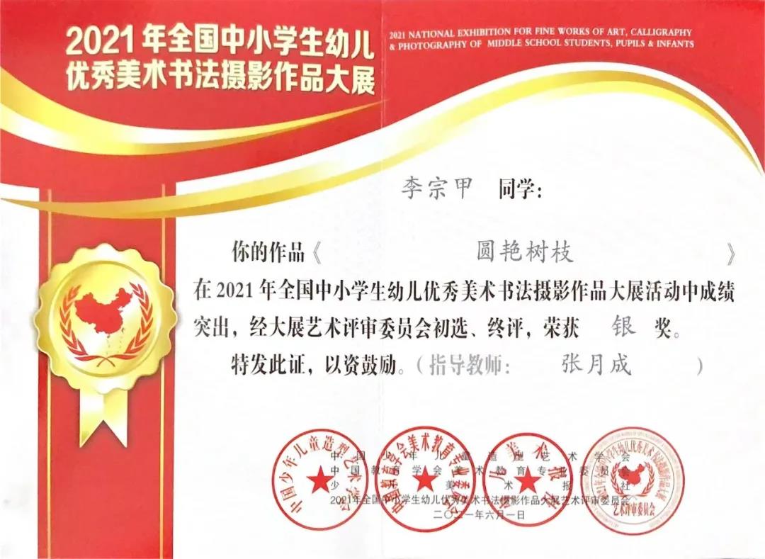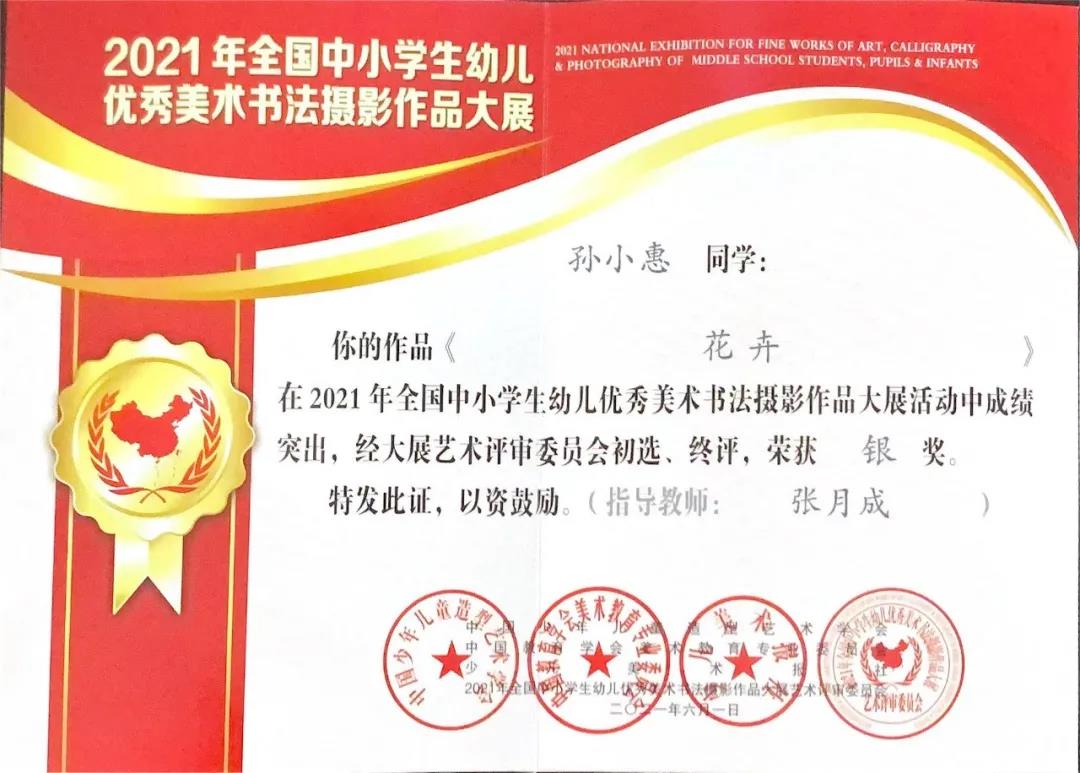 李乐等13名同学荣获“2021年全国中小学生幼儿优秀美术书法摄影作品大展”大奖