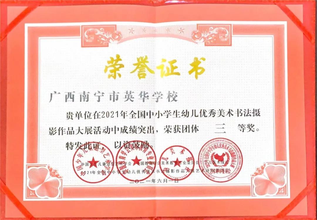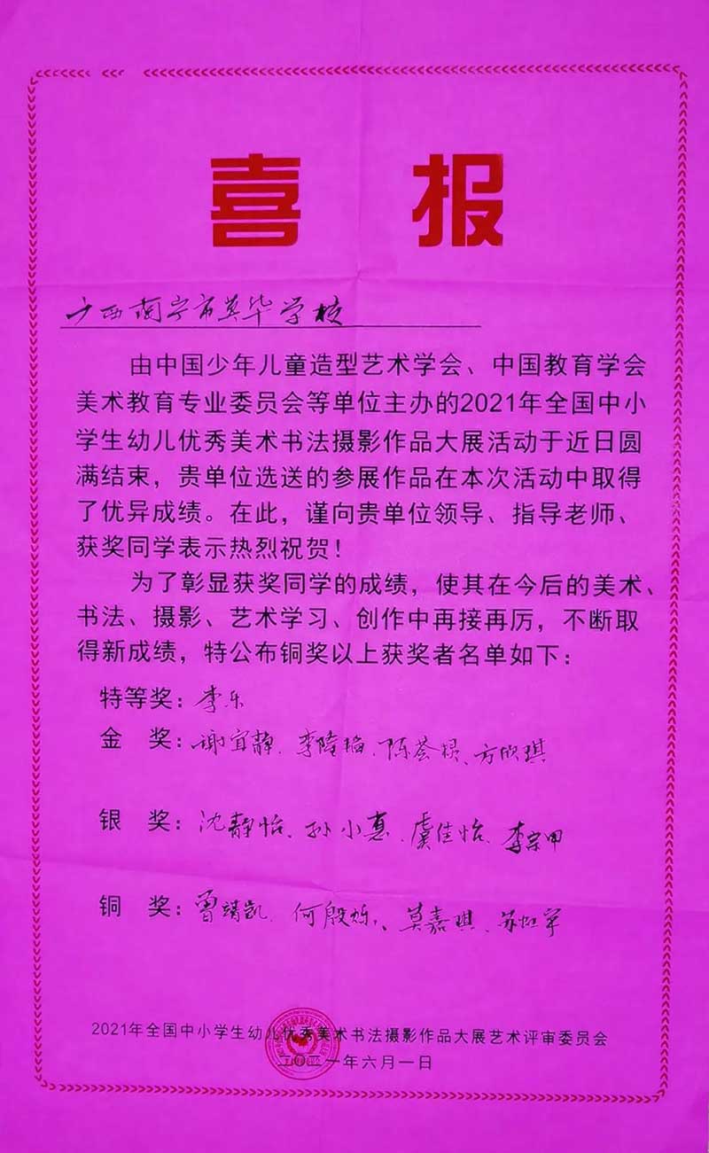 热烈祝贺南宁市英华学校李乐等13名同学荣获“2021年全国中小学生幼儿优秀美术书法摄影作品大展”大奖