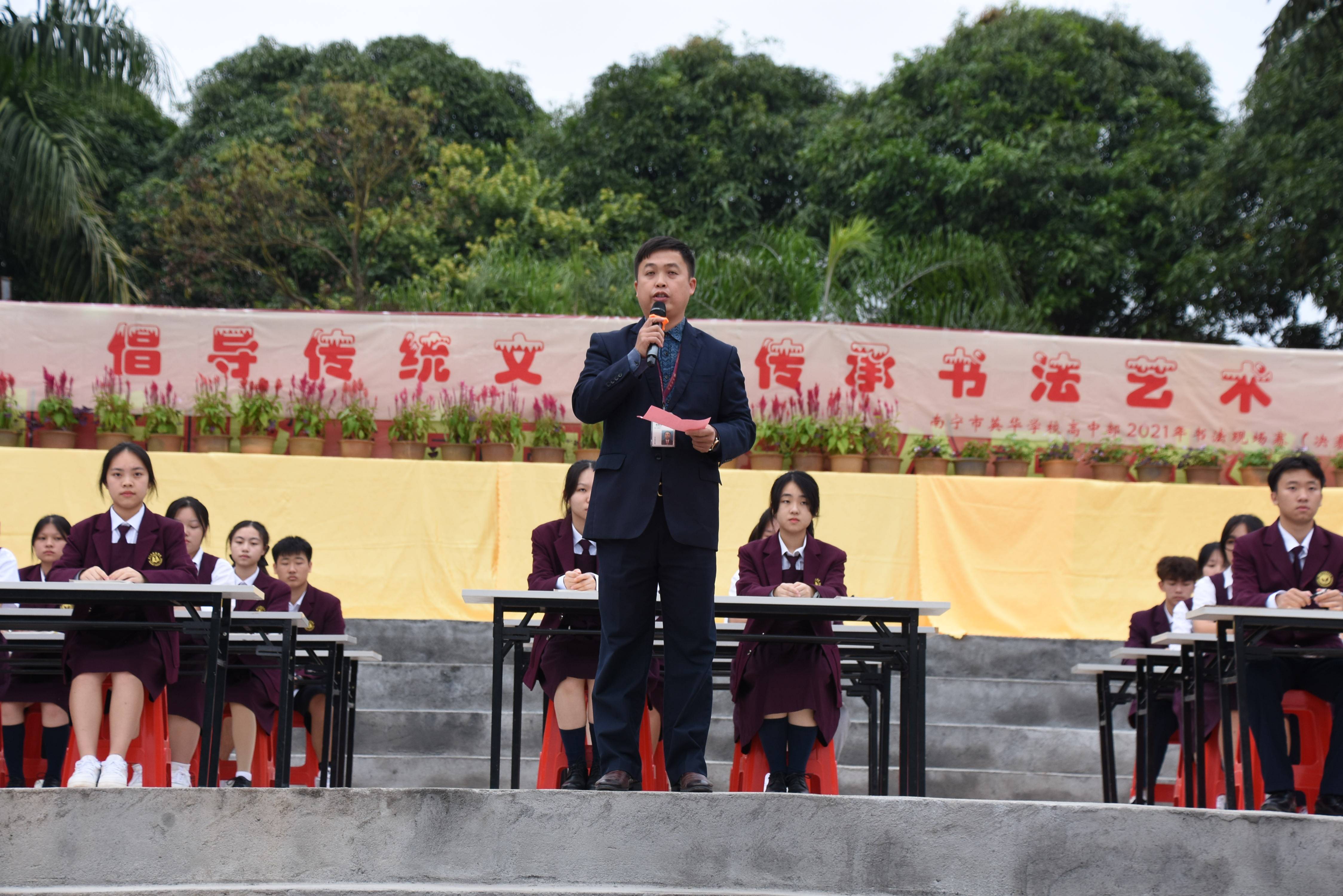 比赛结束后,高中部龙俊年主任进行总结讲话,他说到:本次书法比赛,展示了英华学子良好的精神面貌和较好的书写技能。习书需要静,习书需要长久坚持,形成习惯常态,规范美观的书法作品带给人美的享受,同时,规范的书写能够助力备考,通过此次活动,希望同学们重视书写,改善书写,规范书写。