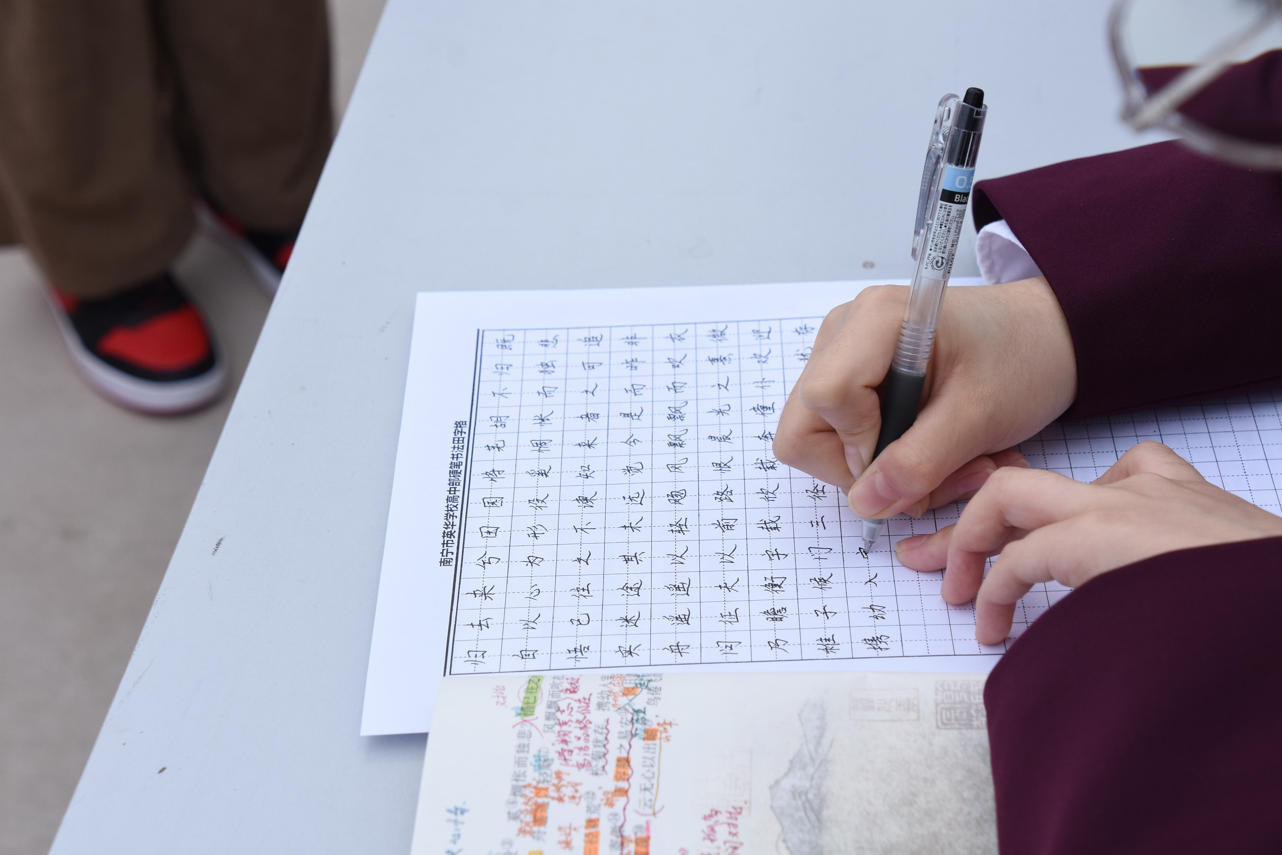 比赛现场,同学们端正坐姿、屏息静气,用心书写每一个笔画、每一个汉字。一个个秀美的汉字跃然于纸上,有的端庄大气,有的苍劲有力,有的灵动飘逸。