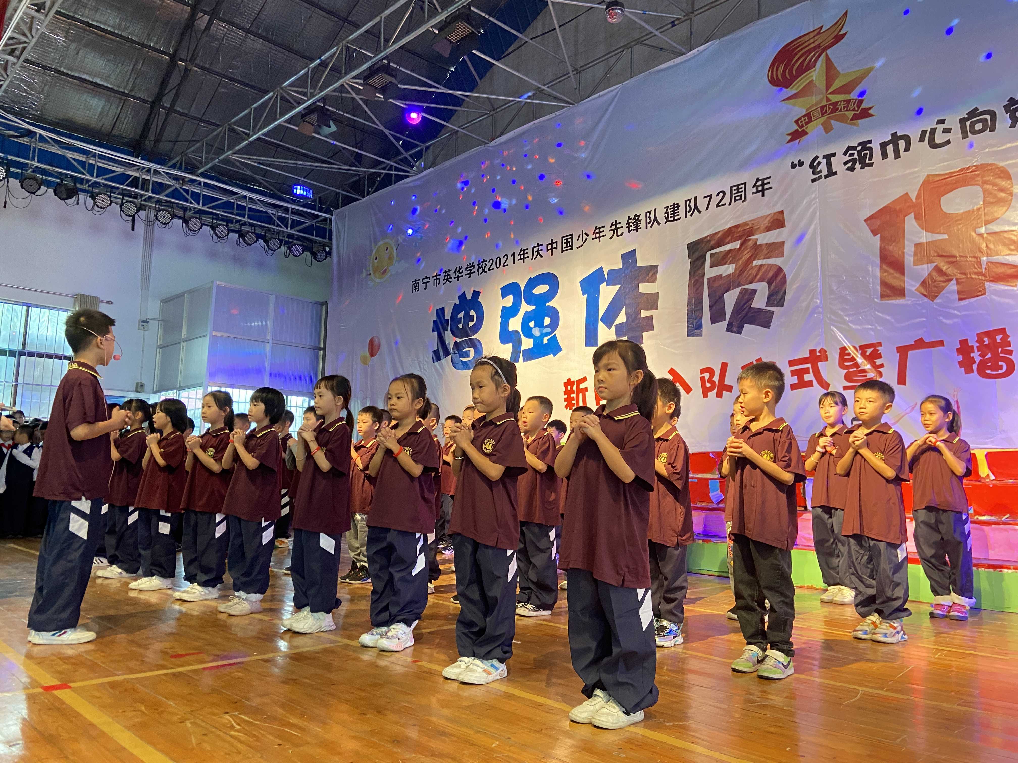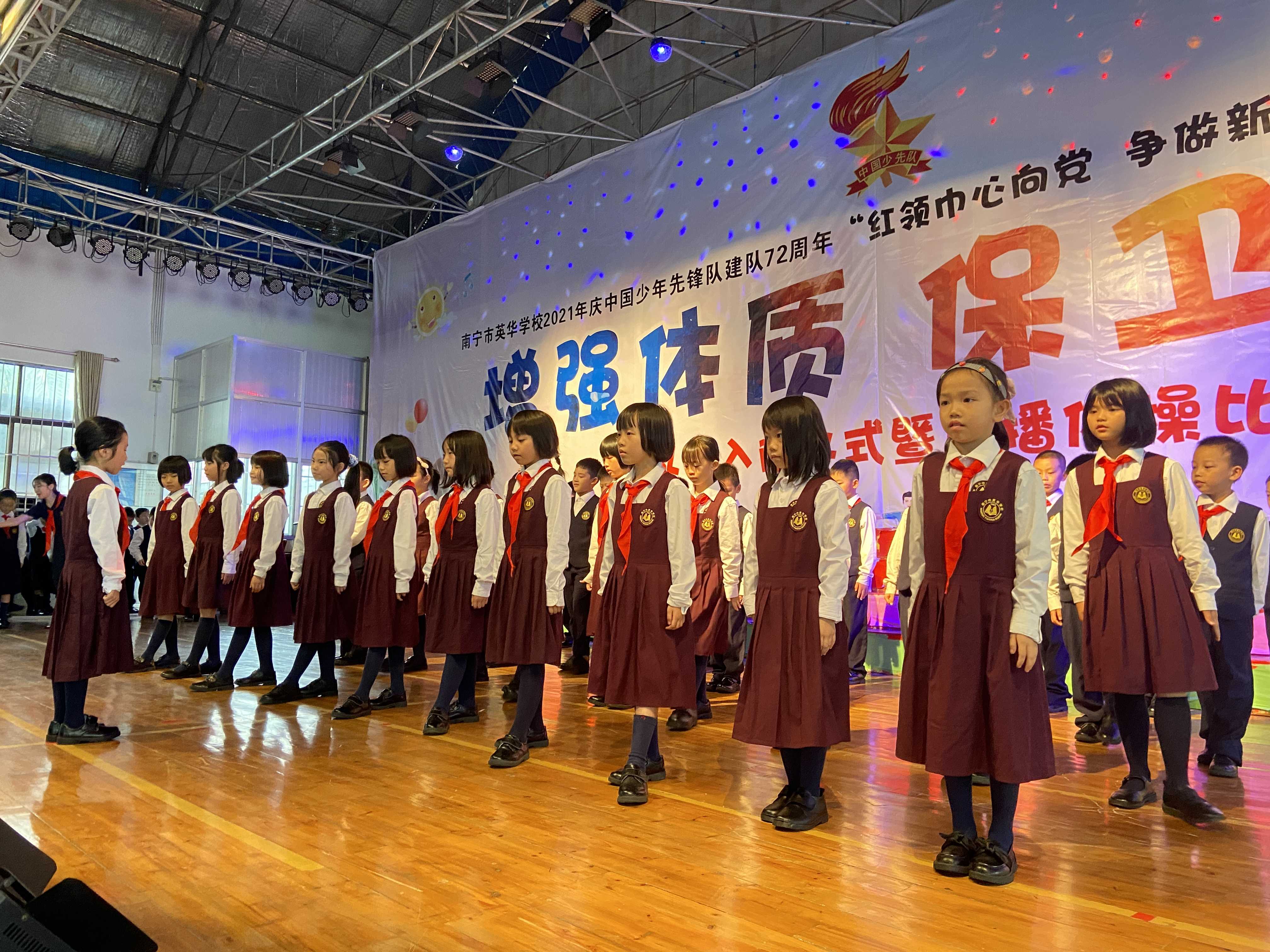 10月13日是中国少年先锋队建队72周年纪念日,我校小学部开展“红领巾心向党 争做新时代好队员”主题队日活动之“增强体质  保卫祖国”——新队员入队仪式暨广播体操比赛。通过活动根植爱国主义情怀,激发学生争做社会主义建设者和接班人的使命感,立志做一名爱党、爱国、爱队好少年的决心。同时,通过广播体操比赛推进阳光体育运动,促进学生的身心健康发展,增强学生体质,培养学生的竞争、协作精神和集体荣誉感。