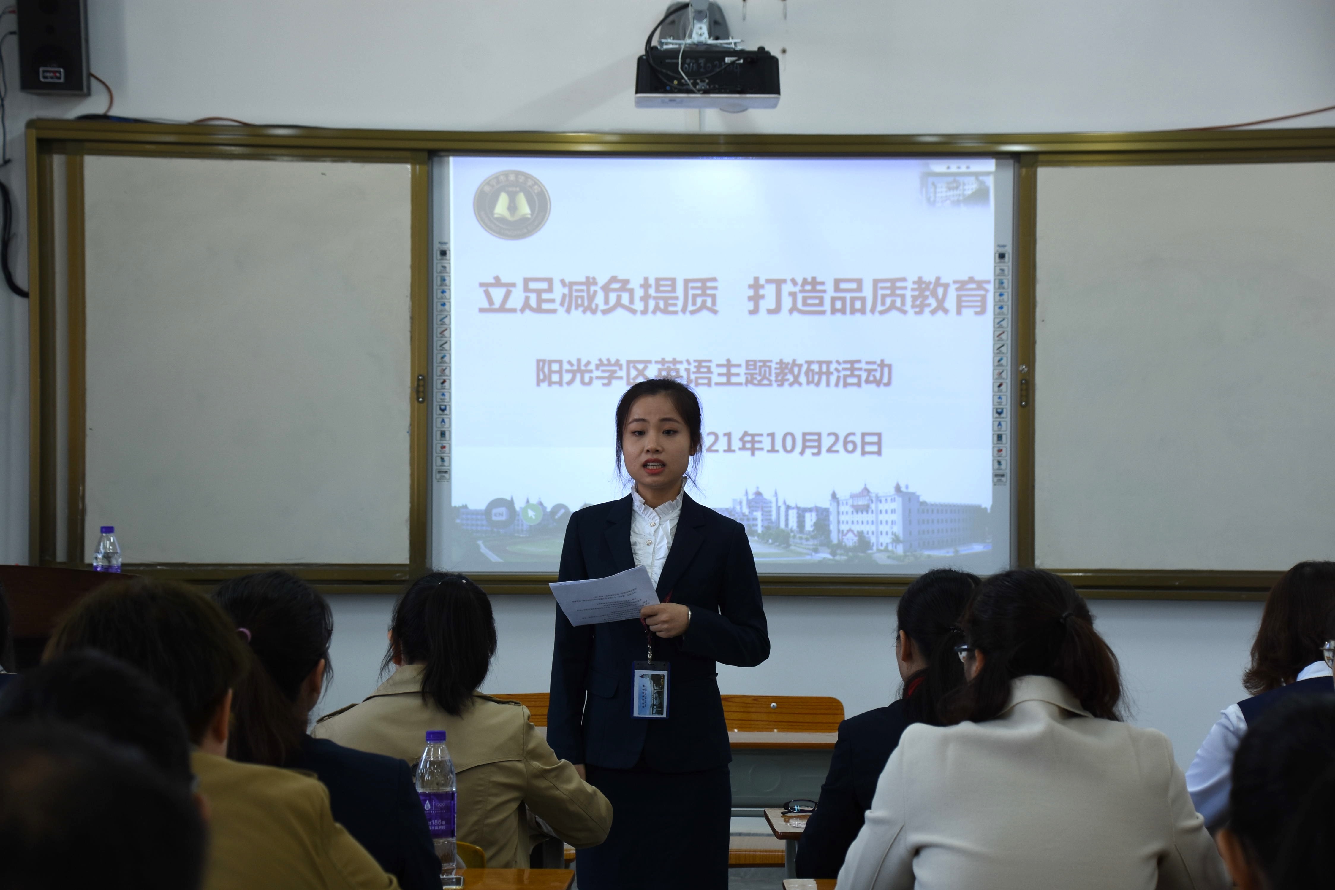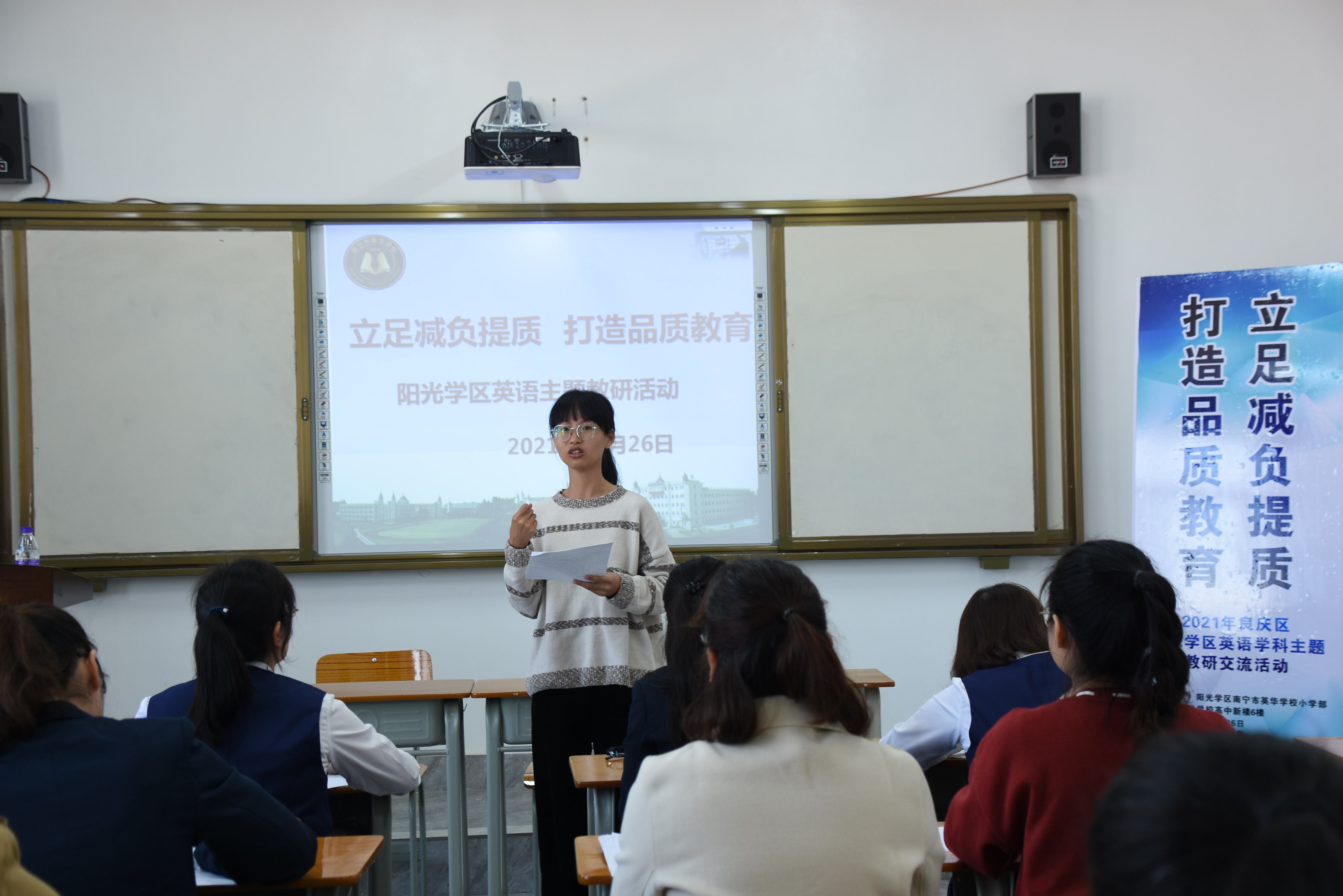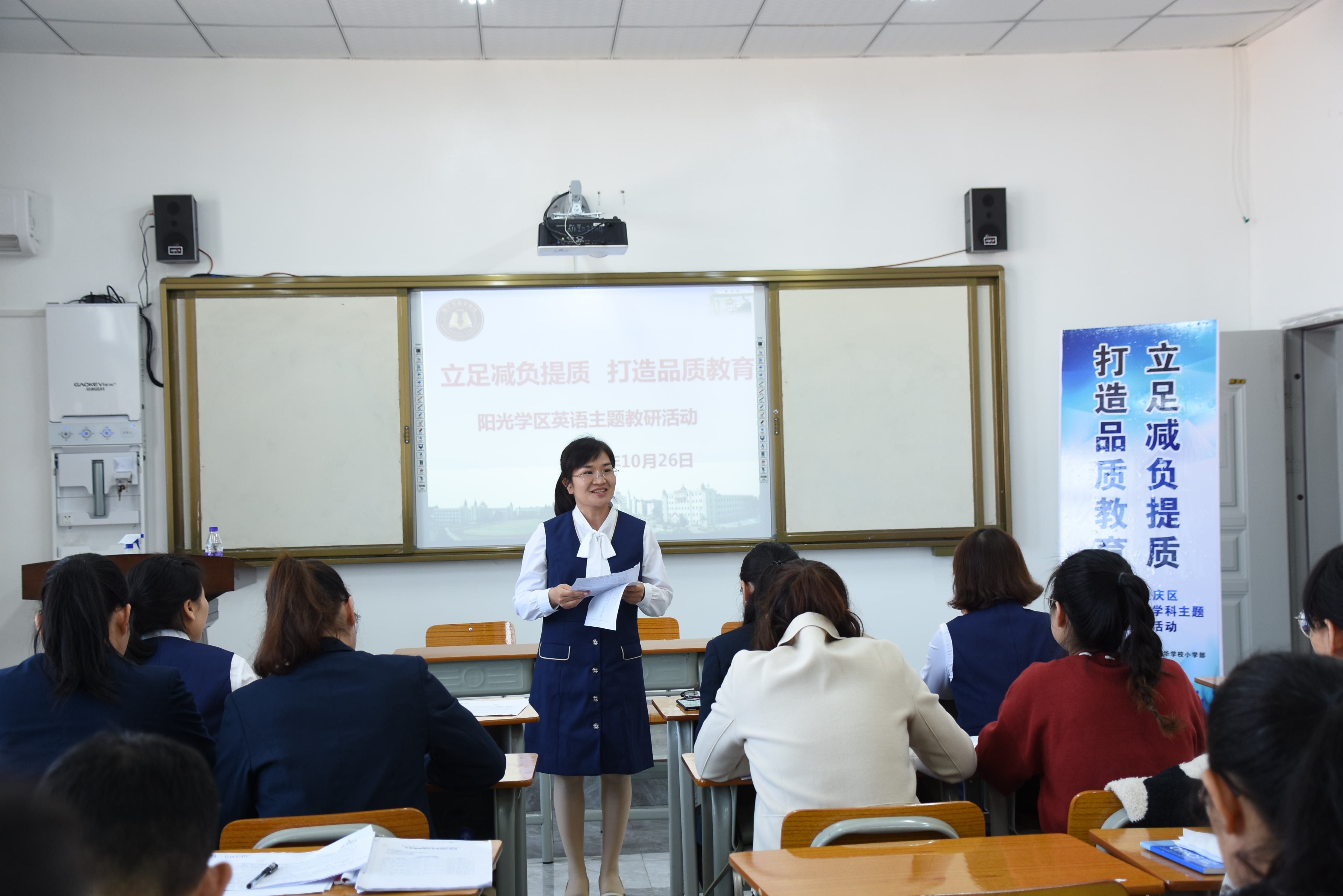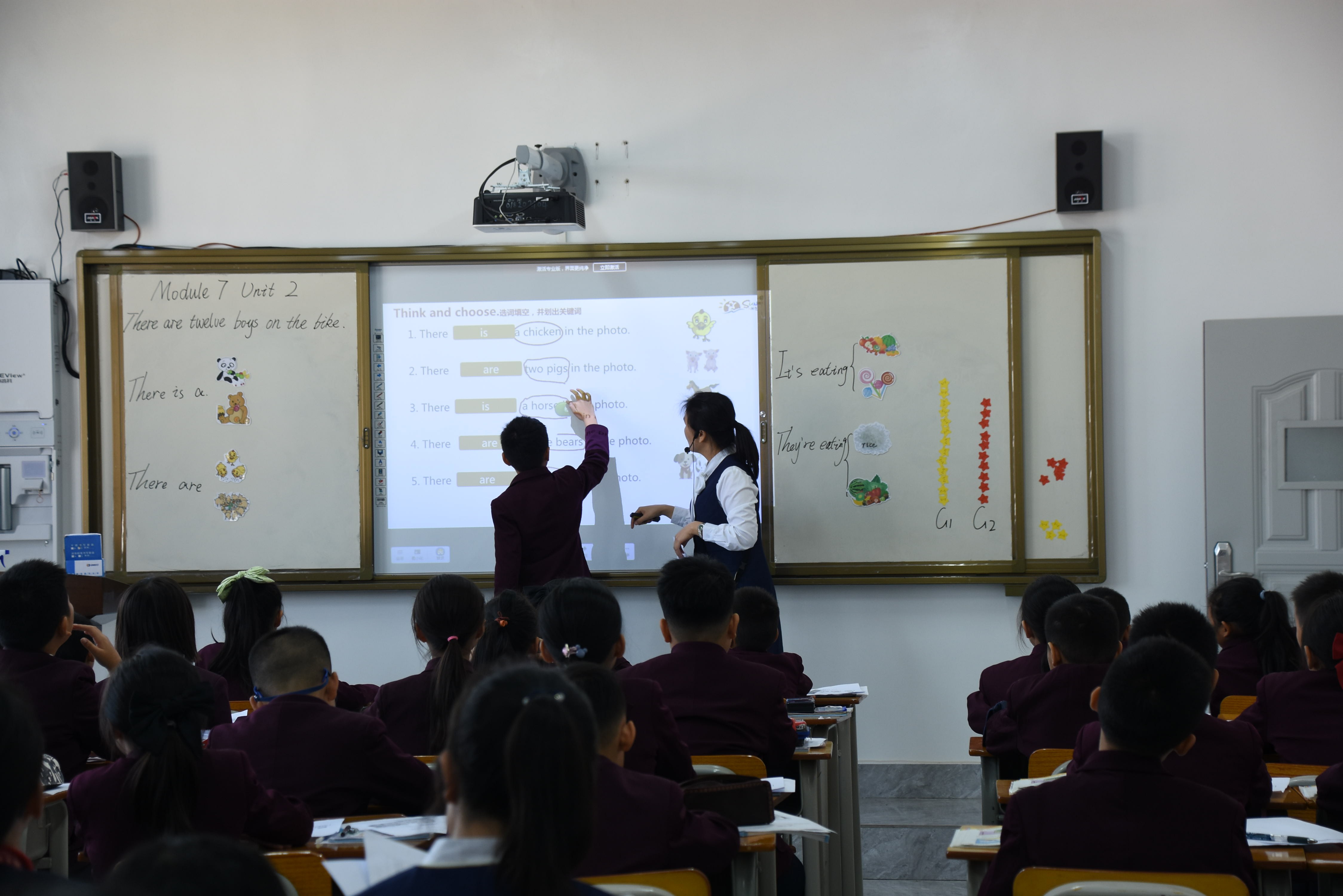 本次主题教研活动议程包括研讨课展示、教学反思、团队研讨分享、集中研讨等几个环节。研讨课采取单元衔接课的课型模式,以外研版小学新标准英语(三年级起始)四年级上册Module 7为研究课例,由英华学校李杰珍老师执教Unit 1 There is a horse in this photo,阳光新城学校阳光校区的邓文娟老师执教Unit 2 There are twelve boys on the bike。