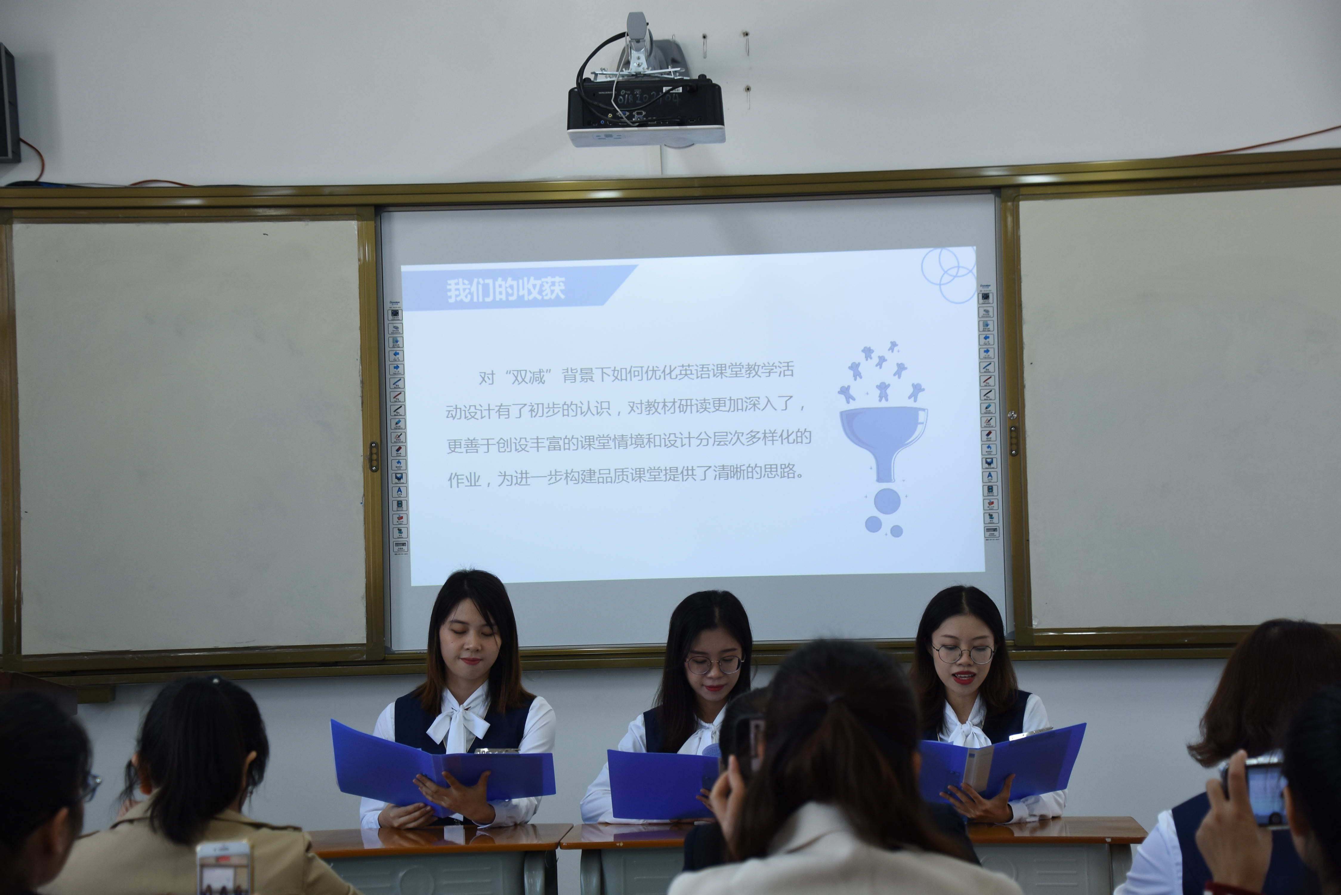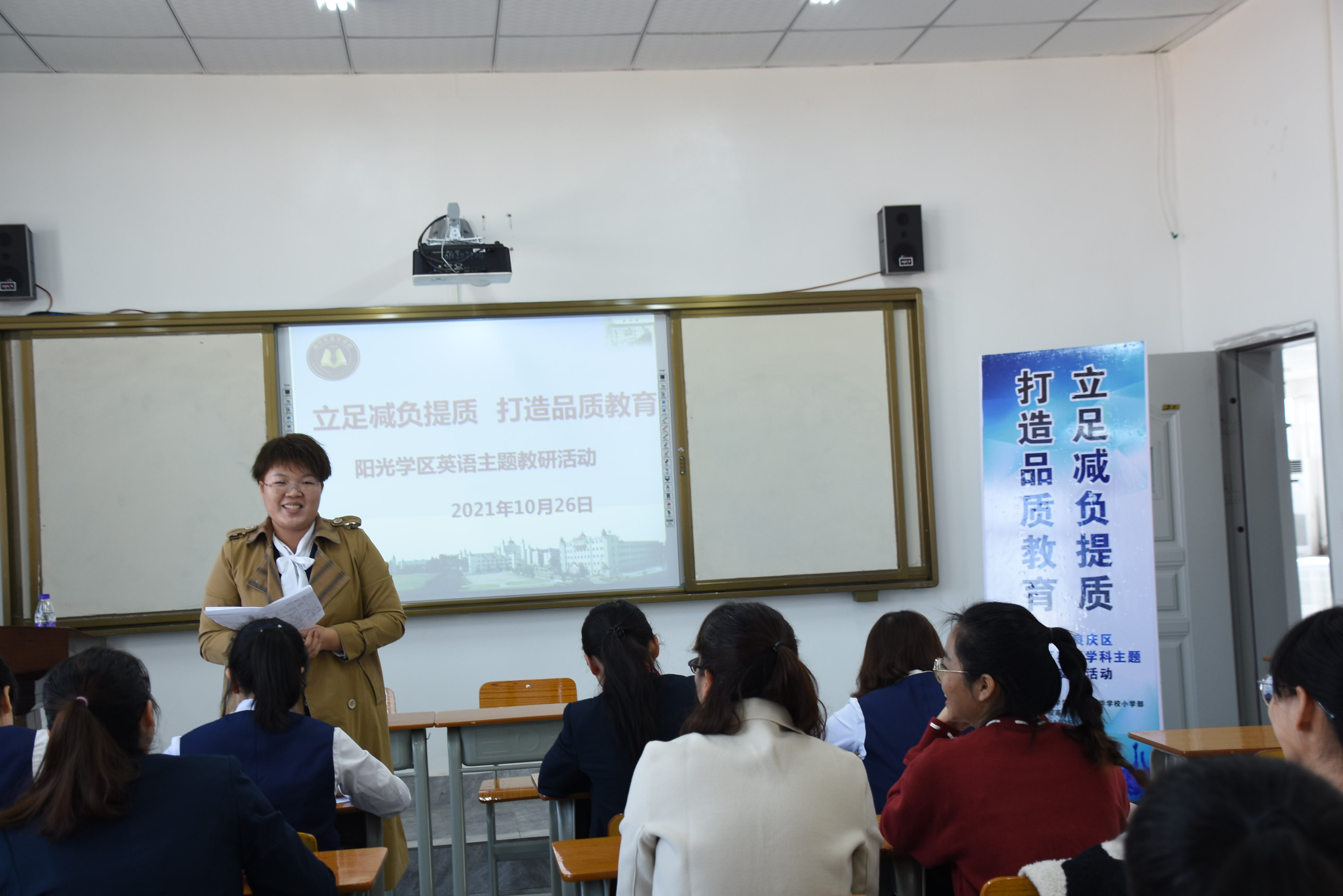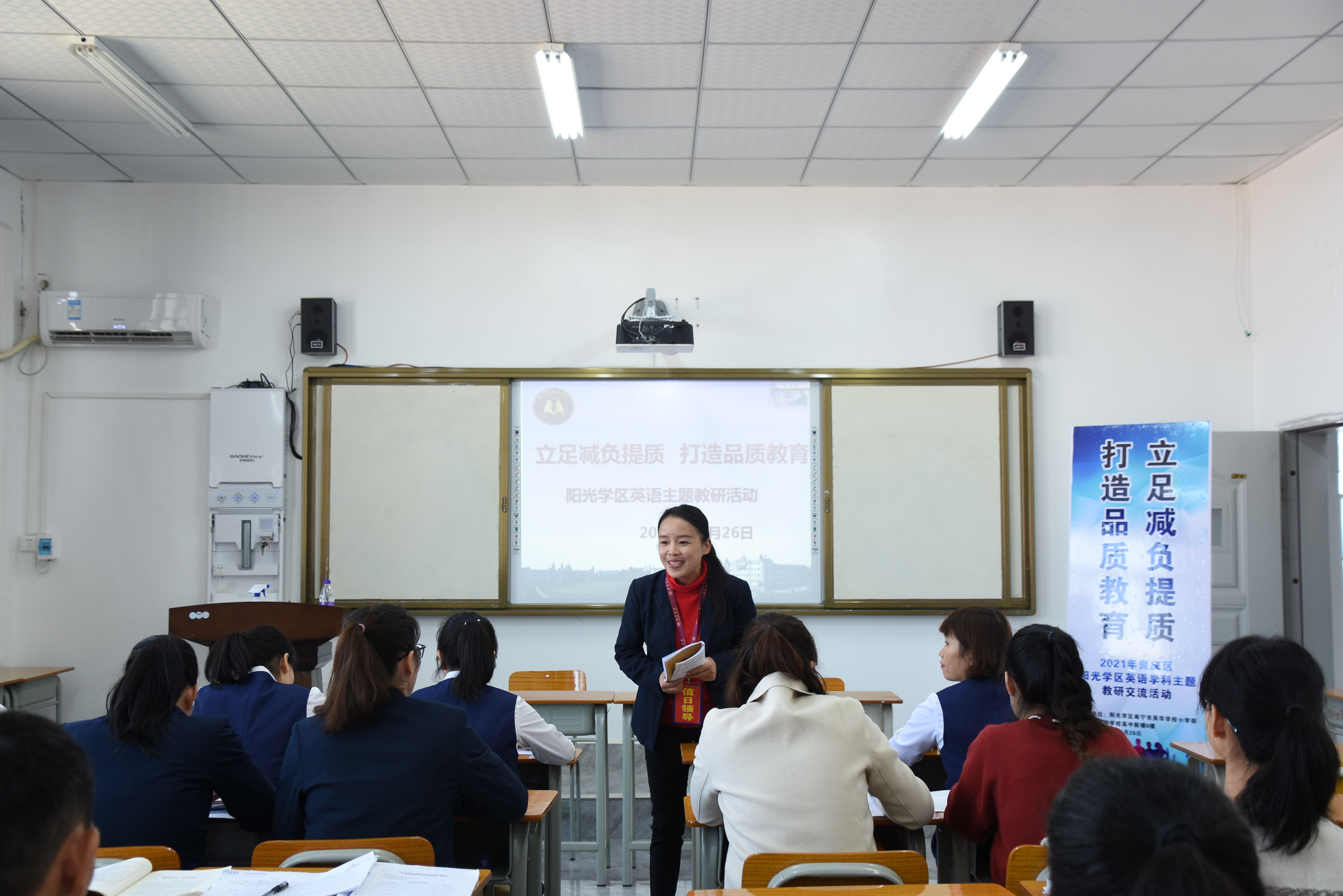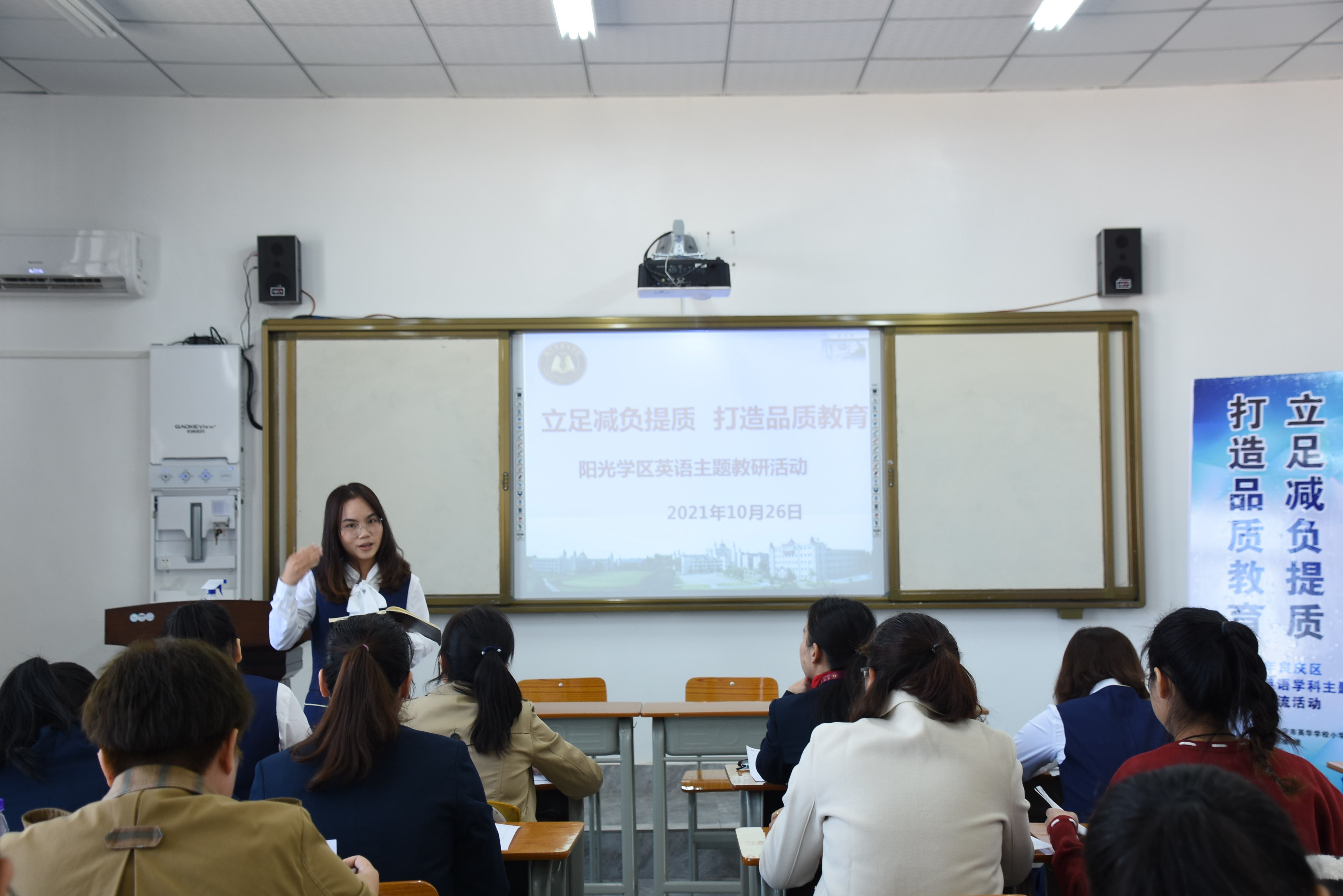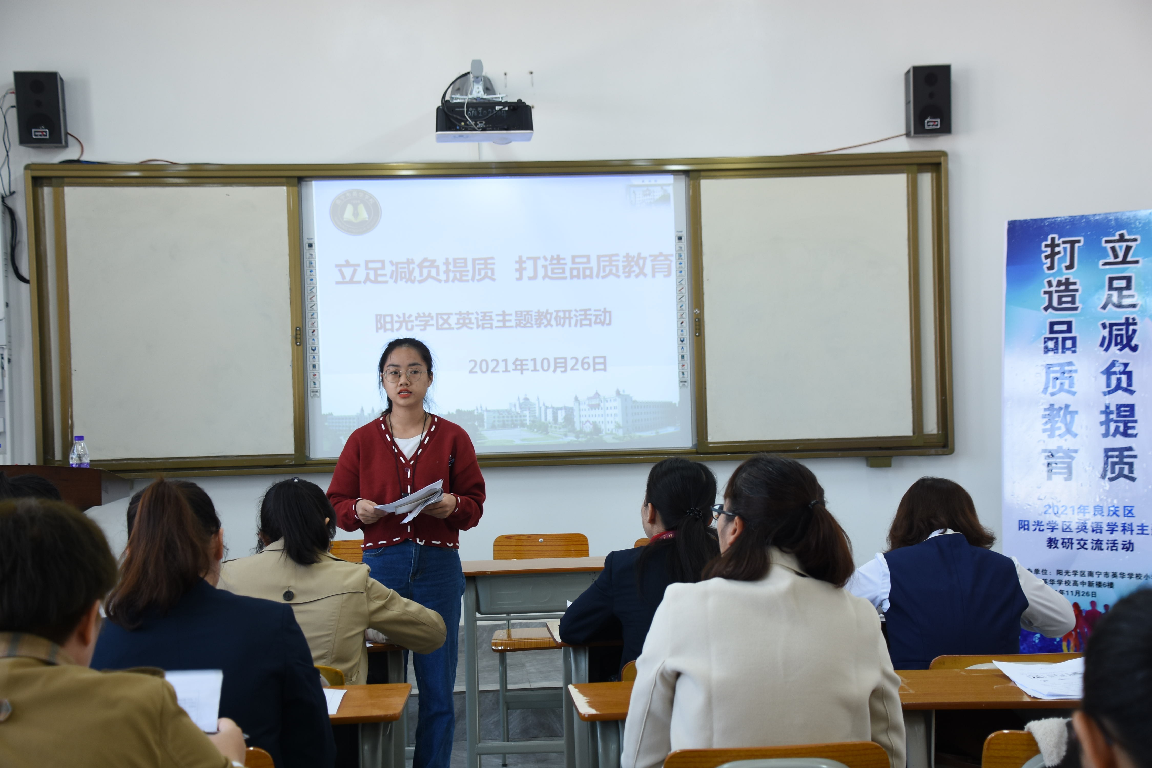 本次主题教研活动议程包括研讨课展示、教学反思、团队研讨分享、集中研讨等几个环节。研讨课采取单元衔接课的课型模式,以外研版小学新标准英语(三年级起始)四年级上册Module 7为研究课例,由英华学校李杰珍老师执教Unit 1 There is a horse in this photo,阳光新城学校阳光校区的邓文娟老师执教Unit 2 There are twelve boys on the bike。