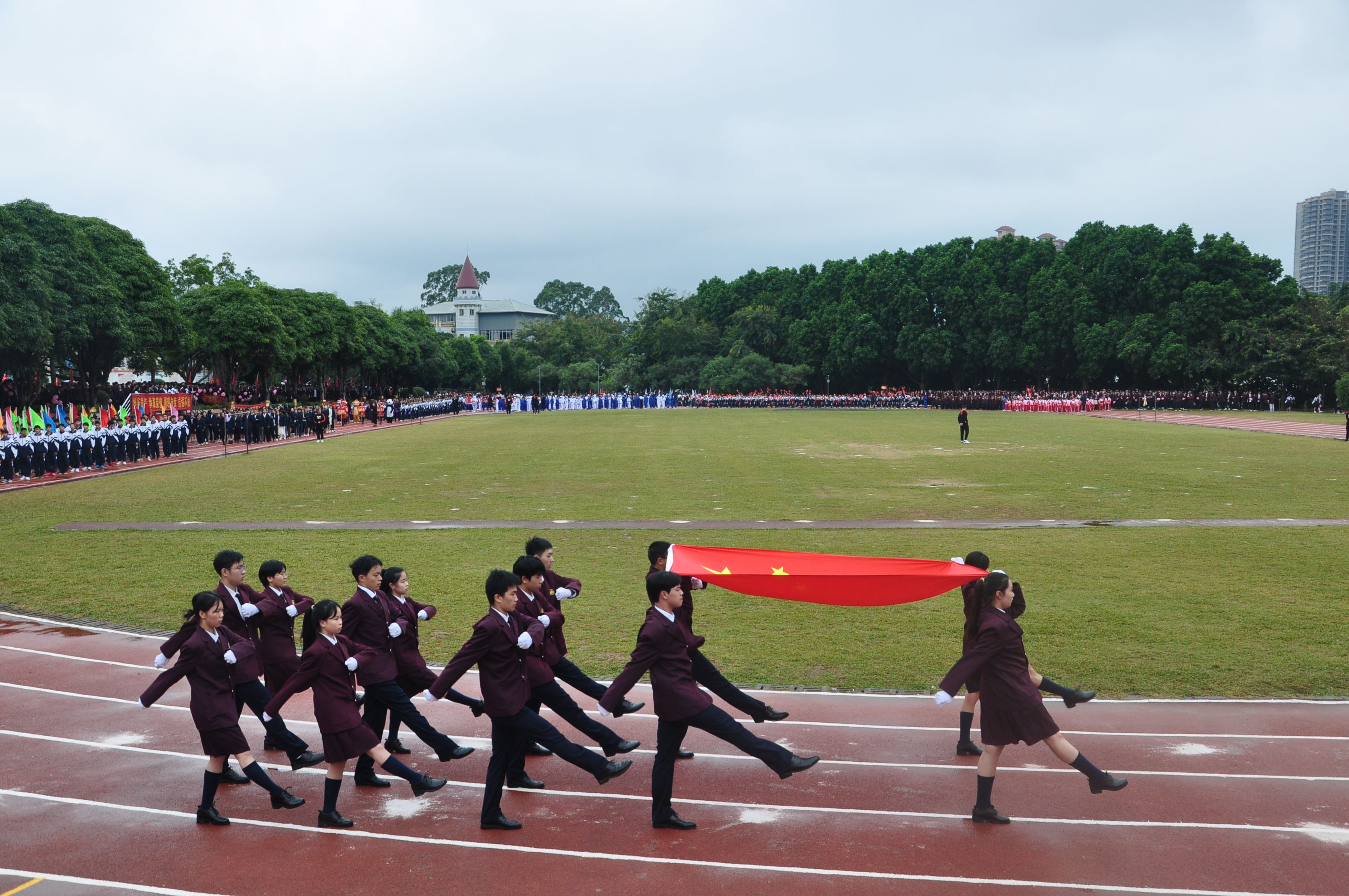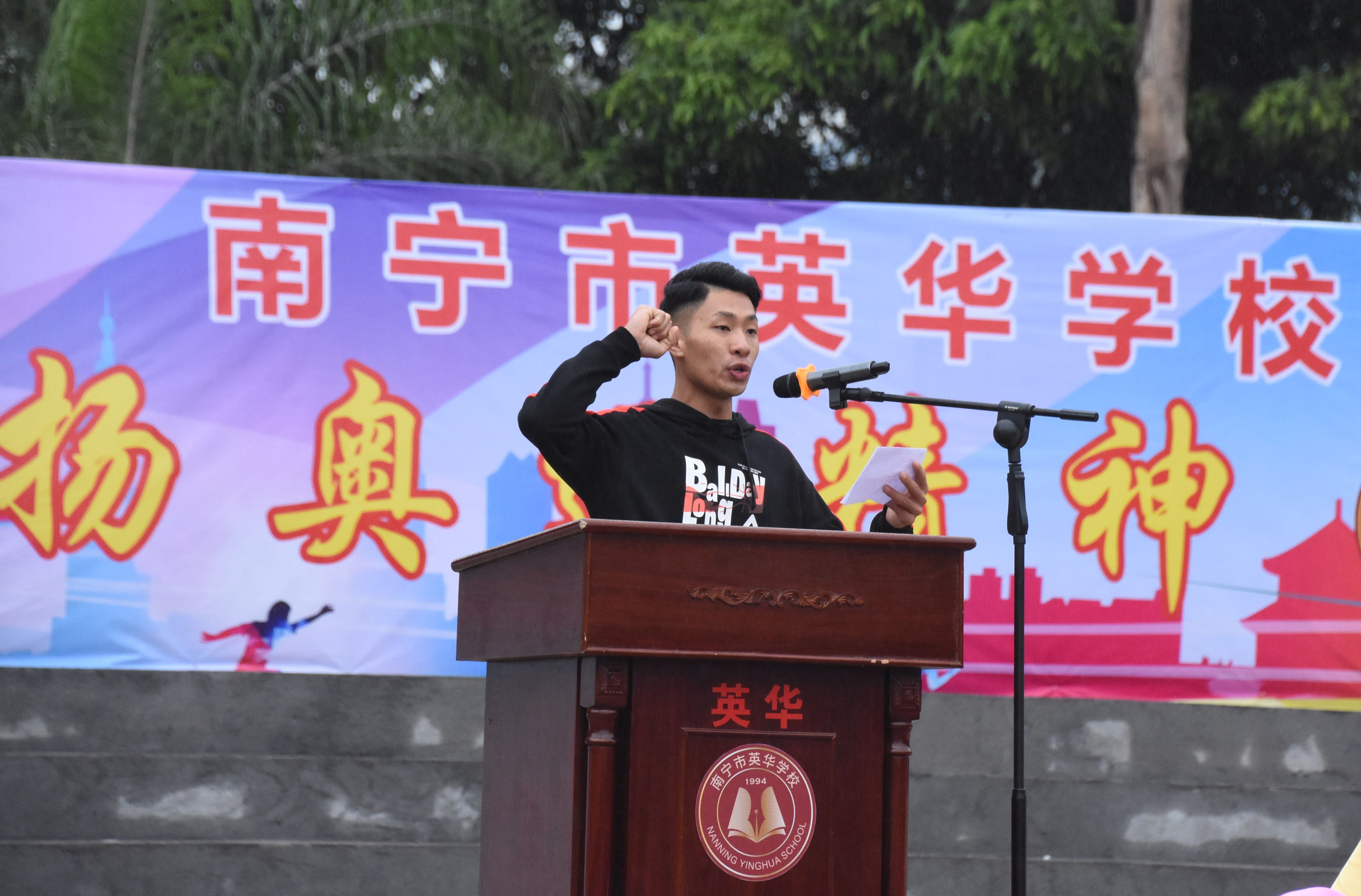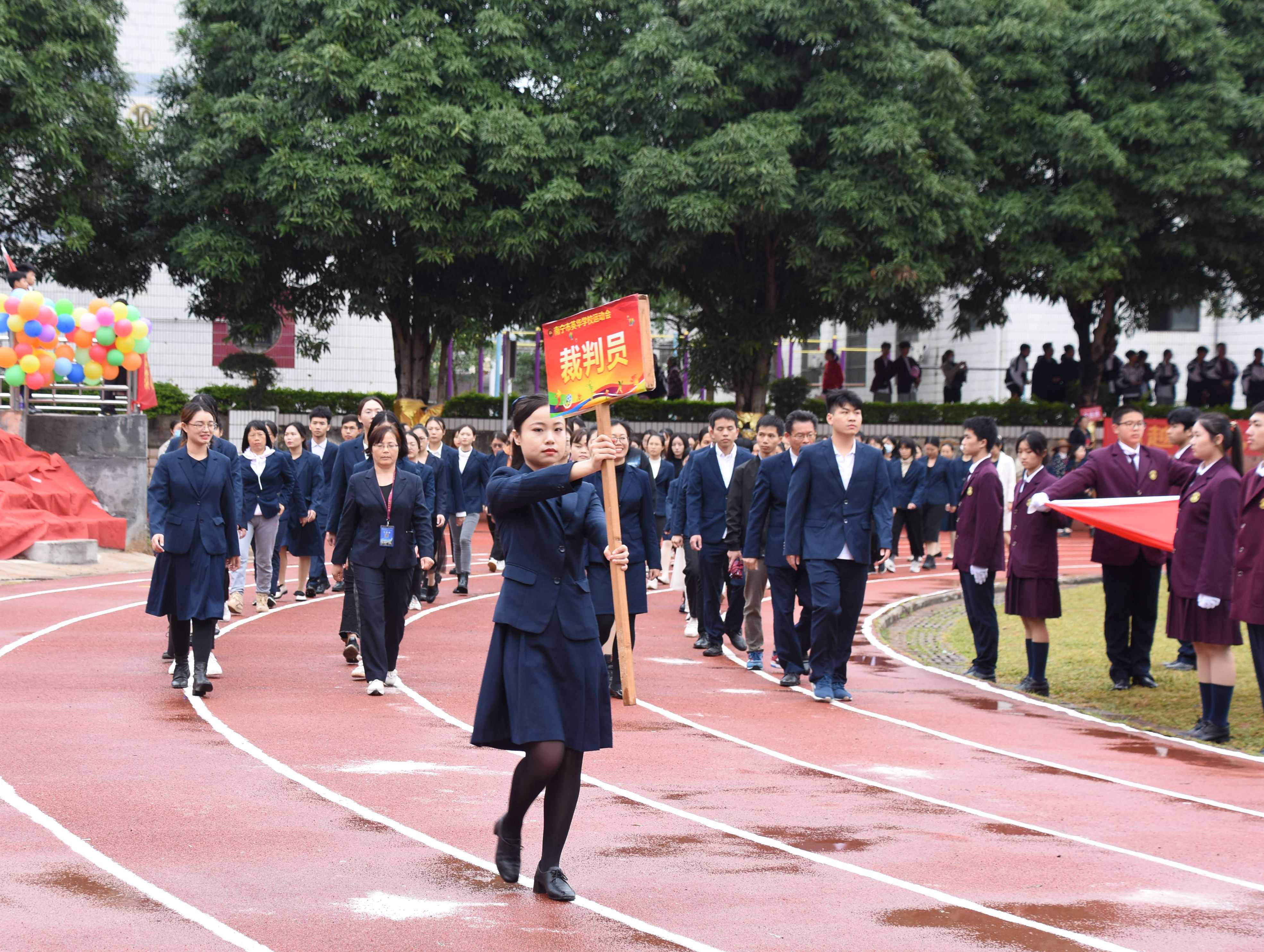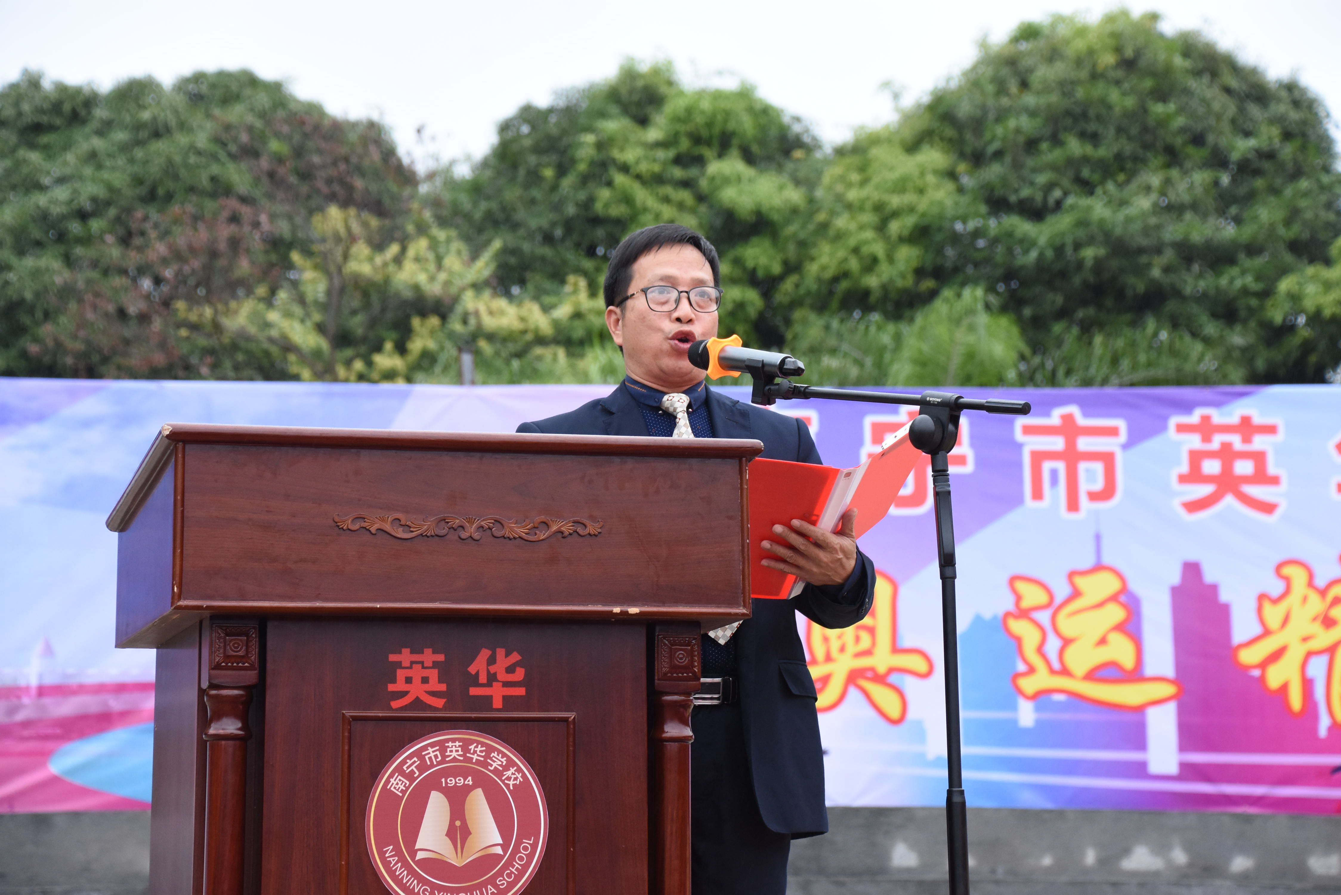 许文锋副校长主持开幕式,宣布“南宁市英华学校第二十四届运动会入场式现在开始。请运动员、裁判员、各学部队伍入场。”