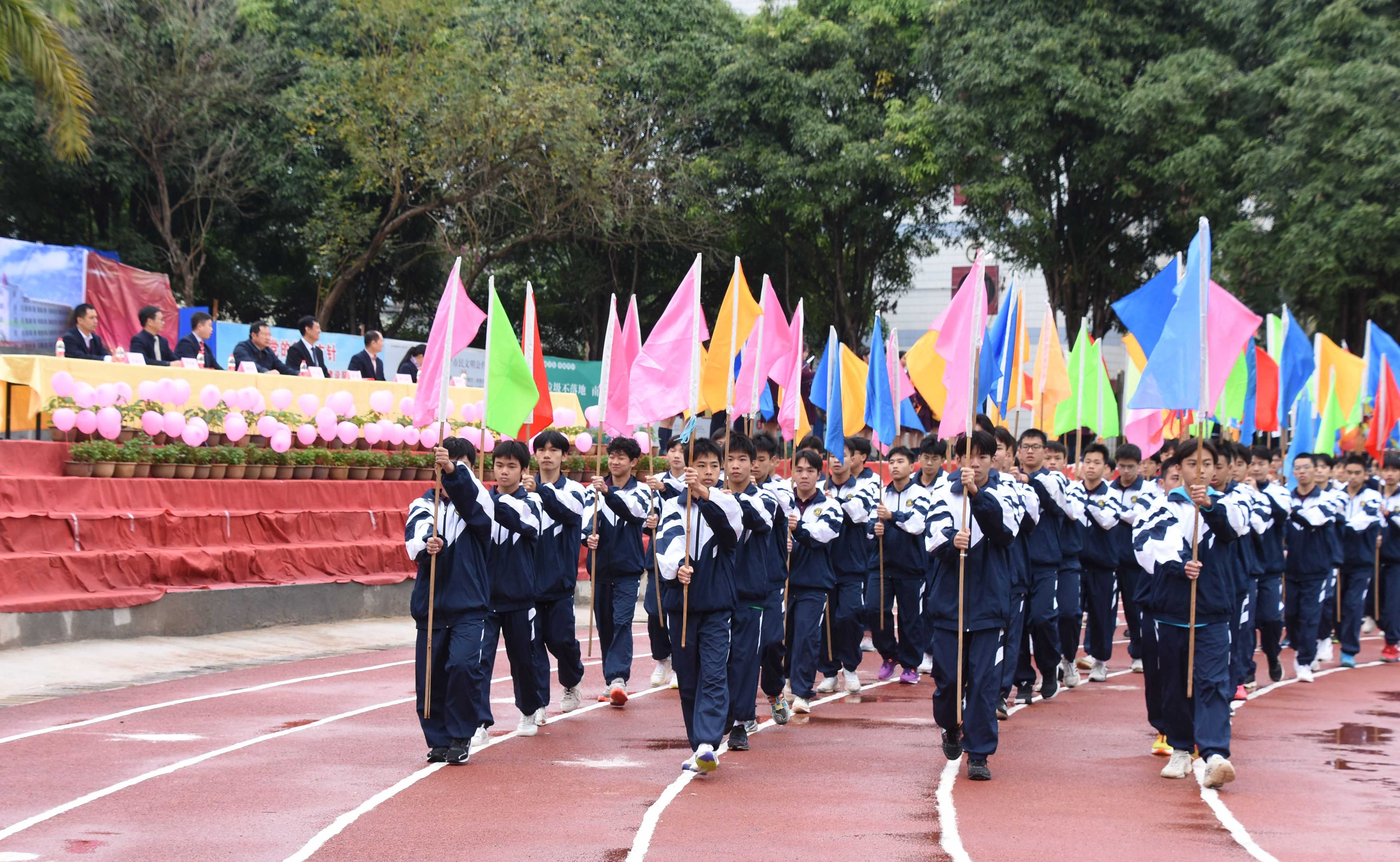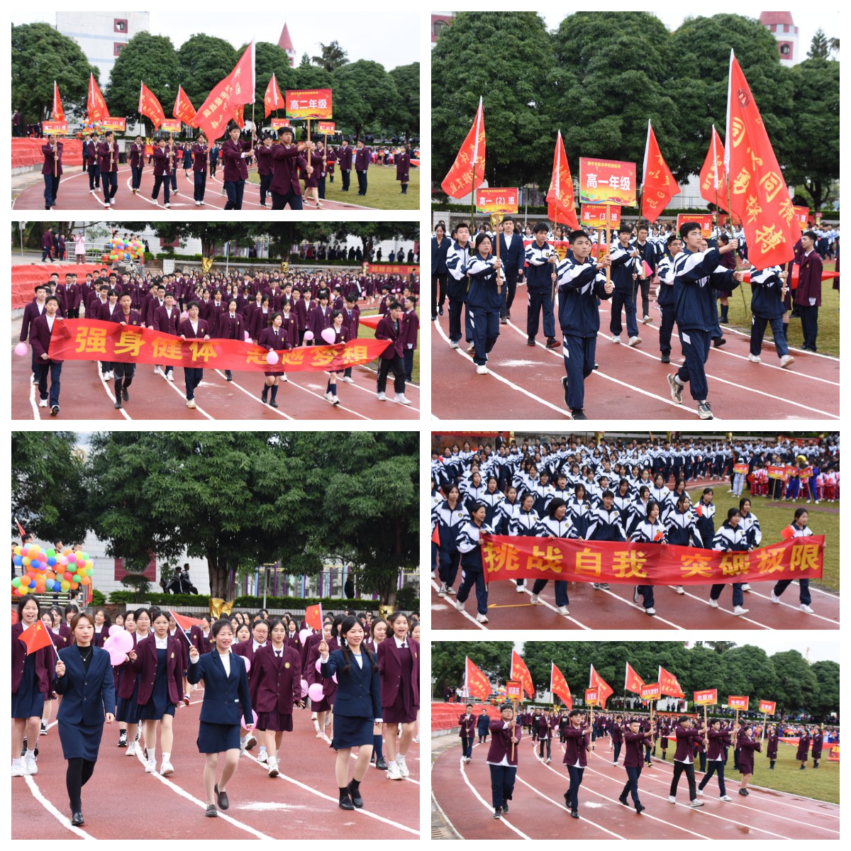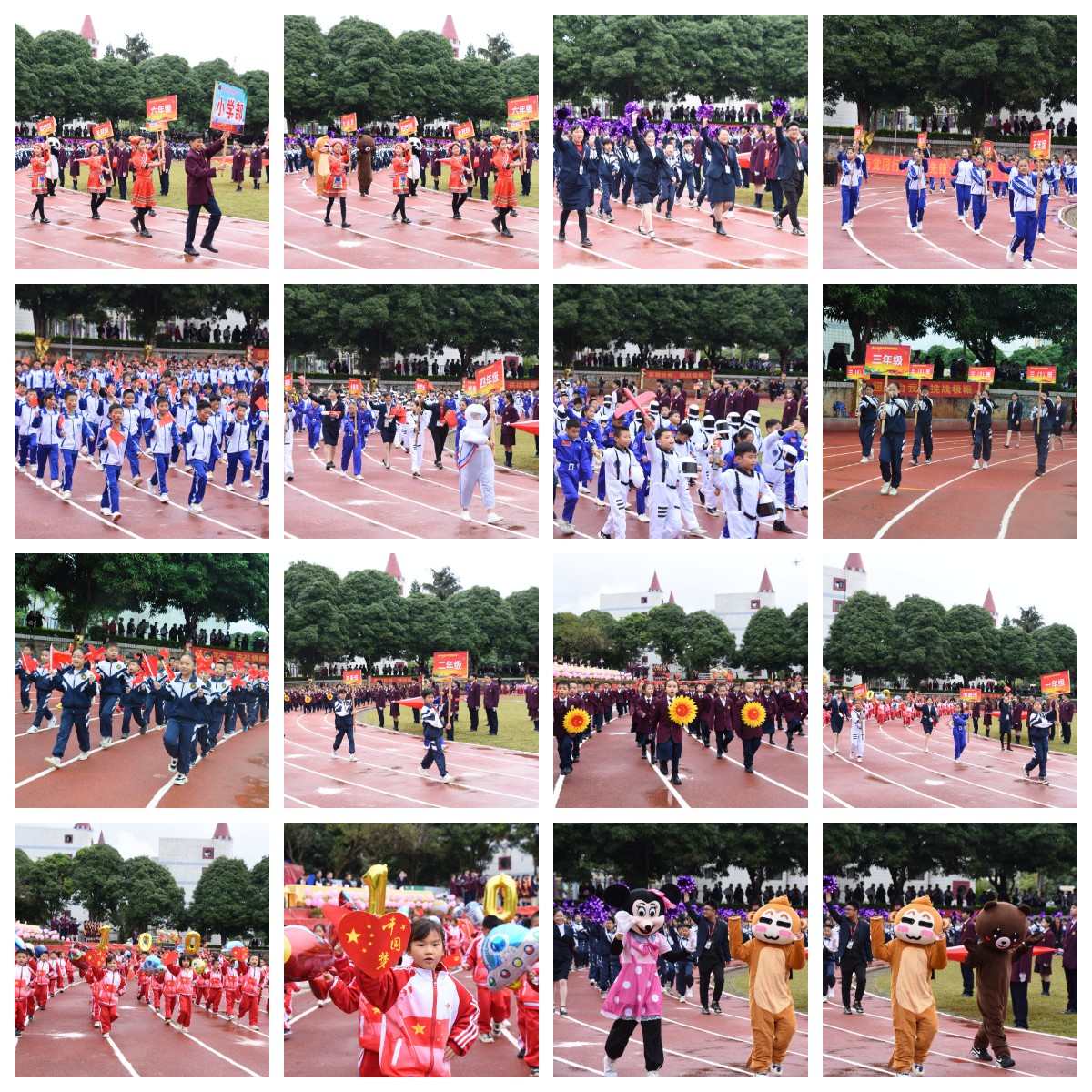 伴随着雄壮激昂的《运动员进行曲》旋律,国旗护卫队、校旗队、校徽方阵、彩旗方阵、裁判员方阵、各年级学生方阵、社团方阵相继入场。同学们着装整齐、意气风发,迈着矫健的步伐、喊出铿锵有力的口号经过主席台接受检阅,彰显出英华学子阳光向上、青春活泼的精神风貌。