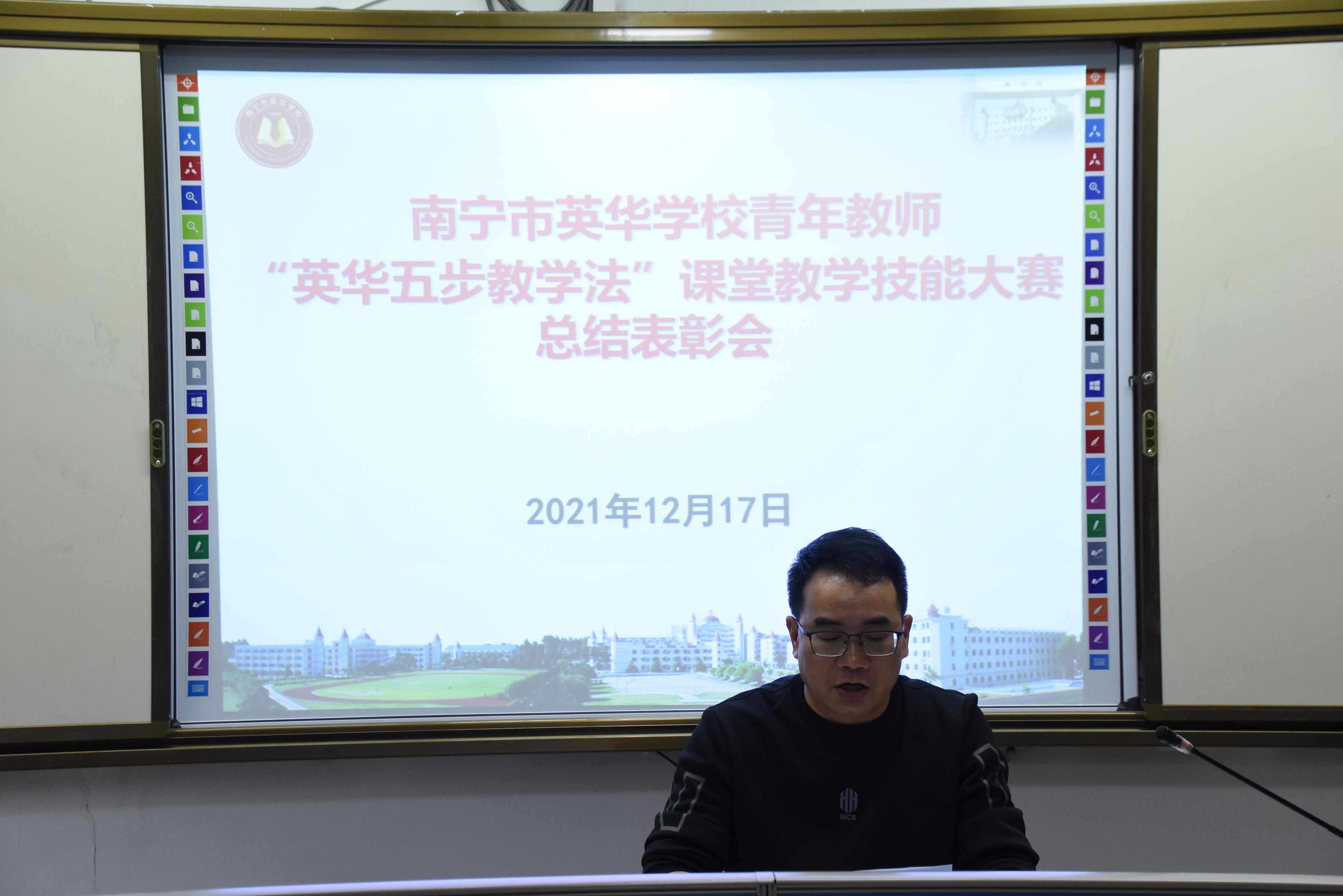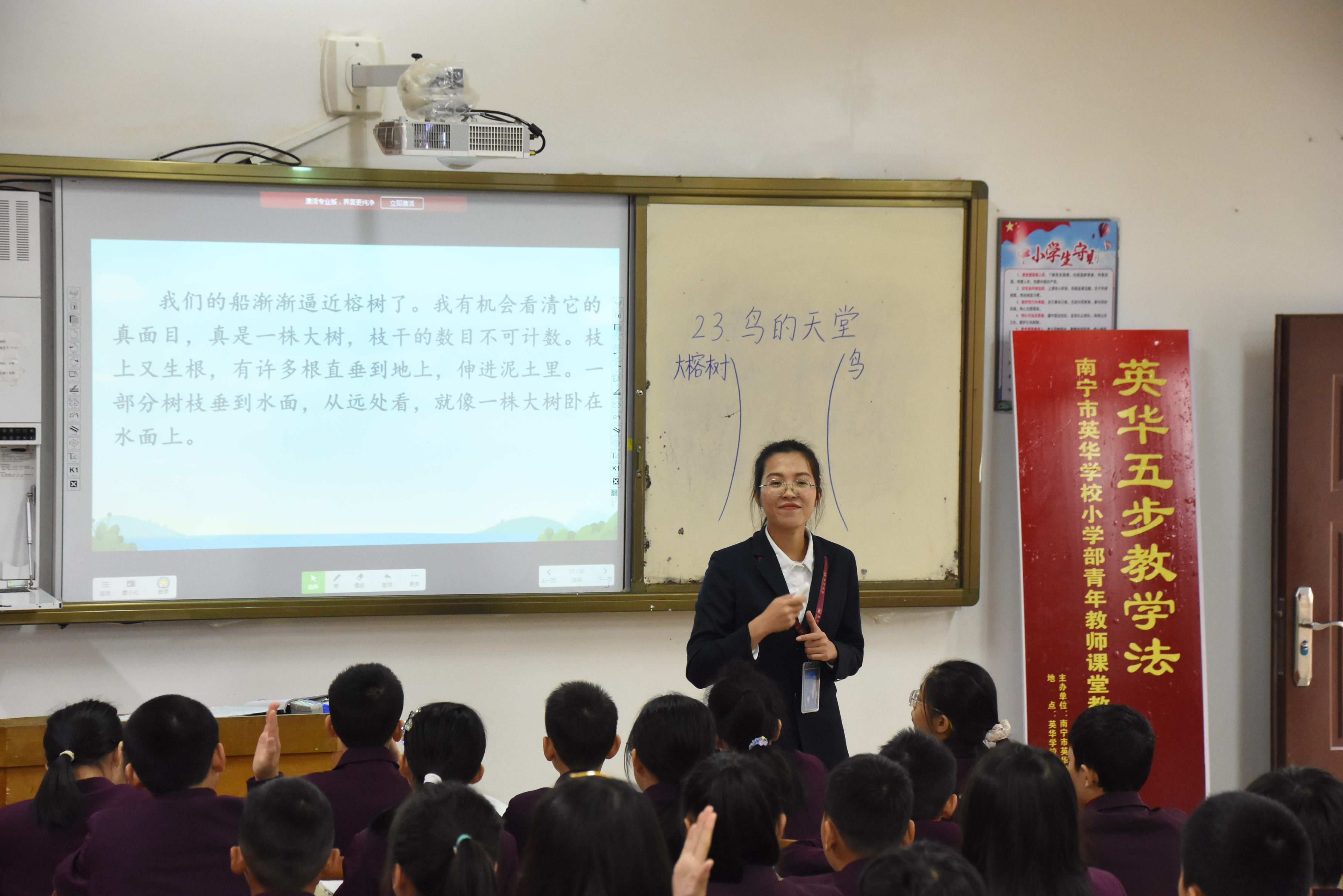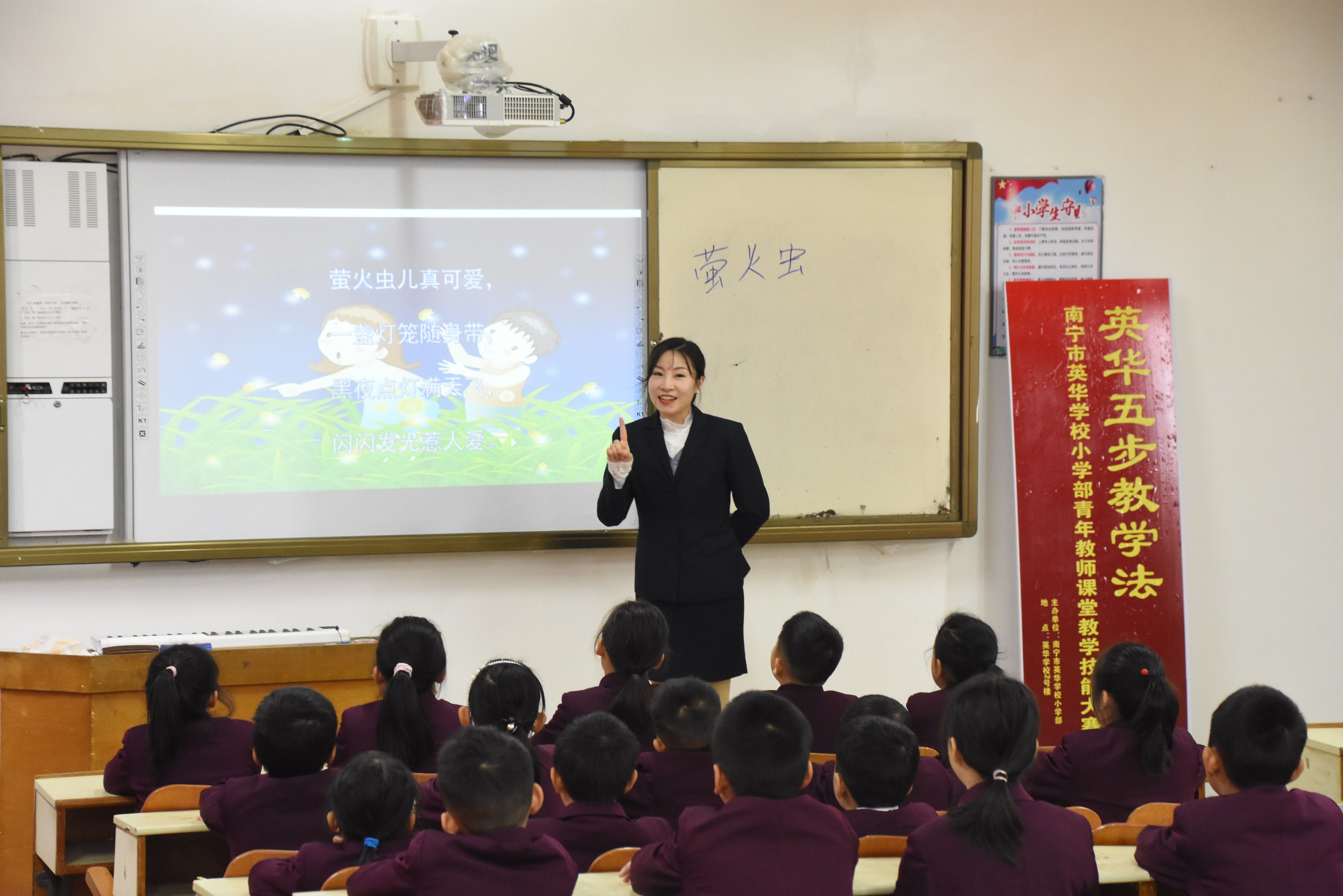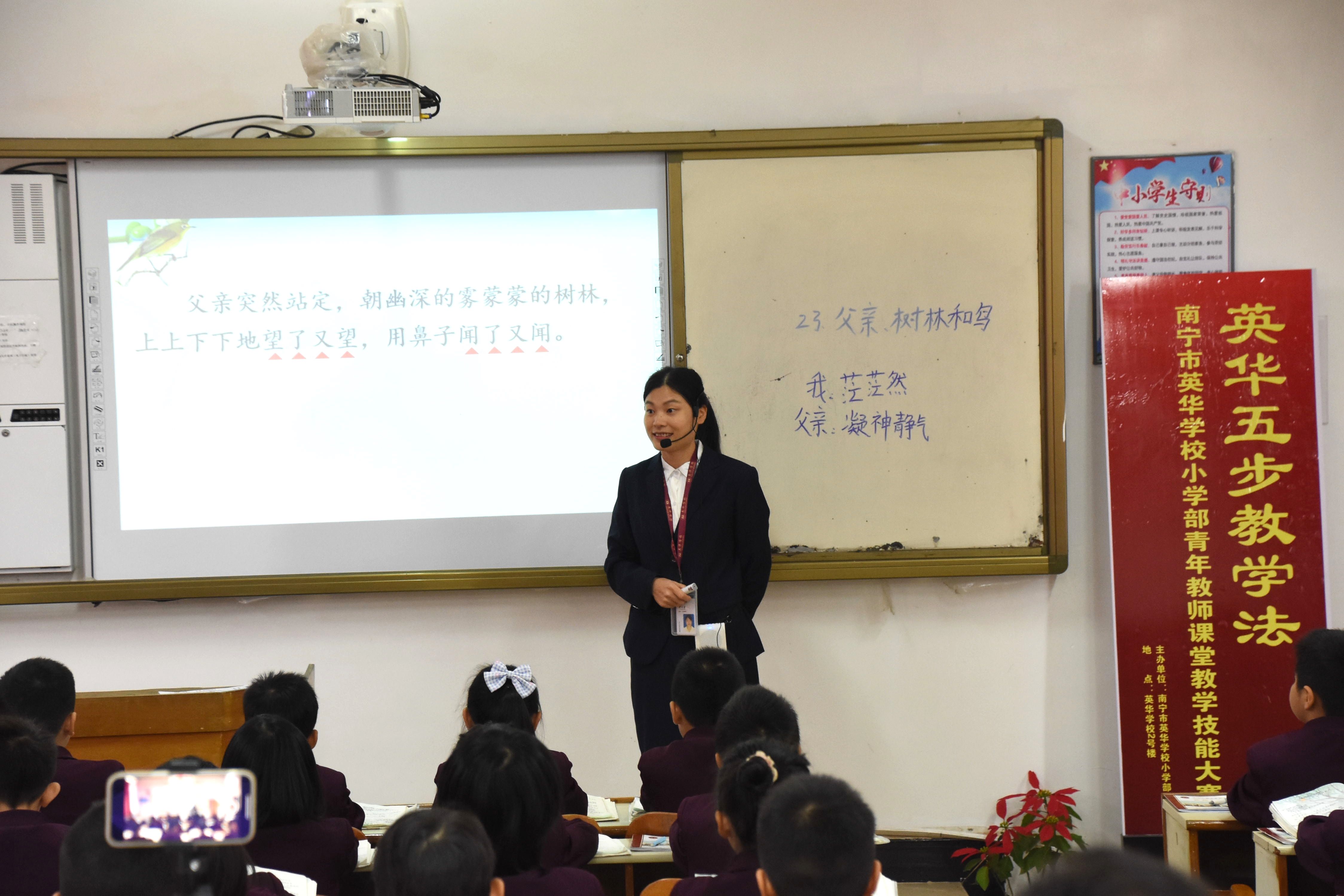 “让师生在课堂上享受快乐的学习生活”。这是师轶校长在小学部青年教师“英华五步教学法”课堂教学技能竞赛评课时对老师们的肯定。