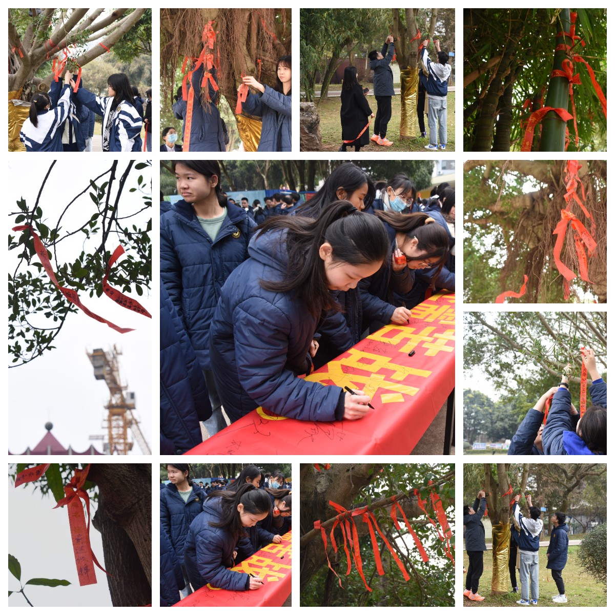 宣誓结束后,全体师生在励志横幅上签名,写下奔赴高考的决心。班主任给学生发放许愿带,学生在许愿带上写下愿望,放飞梦想。