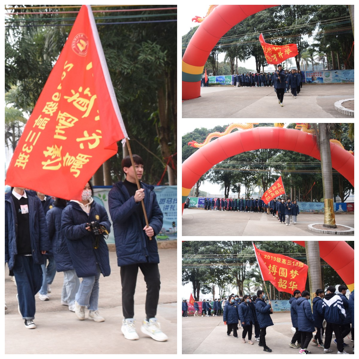 陈校长给高三年级授百日征战旗,洪星考副主任接旗,摇旗呐喊壮士气。