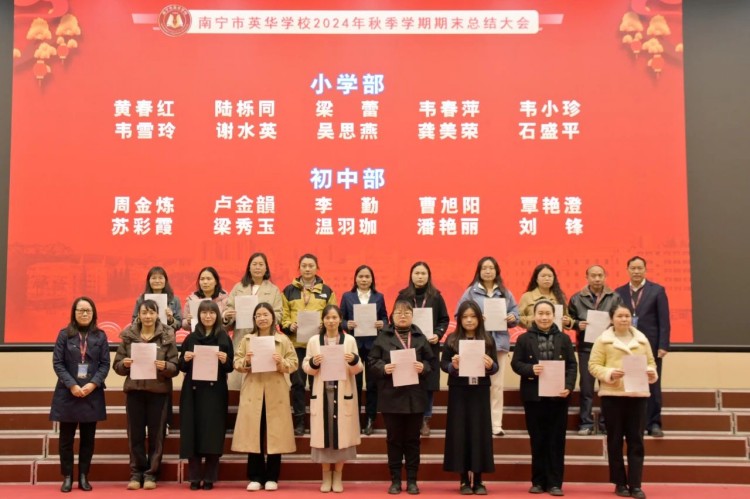 回眸来时耕耘路,展望未来新征程。2025年1月18日,南宁市英华学校举行2024年秋季学期期末总结大会。全体教职工齐聚一堂,共同回顾过去的一个学期所取得的丰硕成果,为新学期的到来积蓄力量做好准备。大会由许文锋副校长主持。