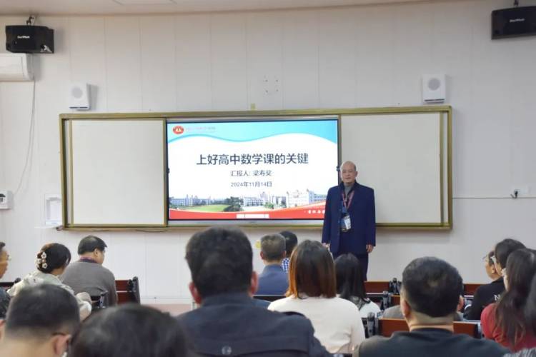 教育改革的浪潮中,为提升青年教师专业素养,推动学校教育教学高质量发展,我校数学正高级教师罗东平老师(原南宁市第十四中学的教师)、数学高级教师梁寿奖老师(原南宁市第二中学教师)为青年教师开展示范课、开设研修讲座。旨在为青年教师提供宝贵的学习机会,助力他们在教学工作中实现质的飞跃。高中部四十多位数学教师参加了此次活动,活动由高中部数学教研组长何启钦老师主持。