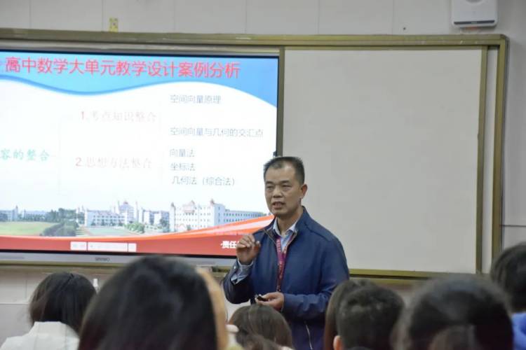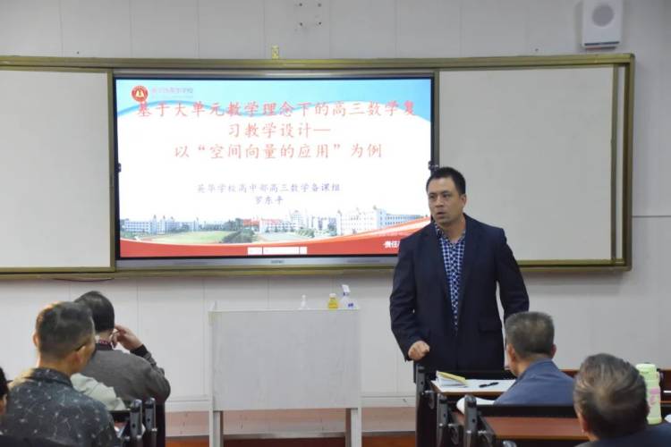 2025年1月2日,罗东平老师亲自上了一节示范课——空间“隐形”直角坐标系的建立。这堂课展现出极高的教学水准与深厚的专业素养。随后,罗东平老师从高中数学大单元教学的界定、高中数学大单元教学的特征及特性、高中数学大单元教学设计的实施路径、高中数学大单元教学设计案例分析四个方面讲解了自己对大单元的理解,分享了自己的教学理念,为青年教师打开了新的思路。
