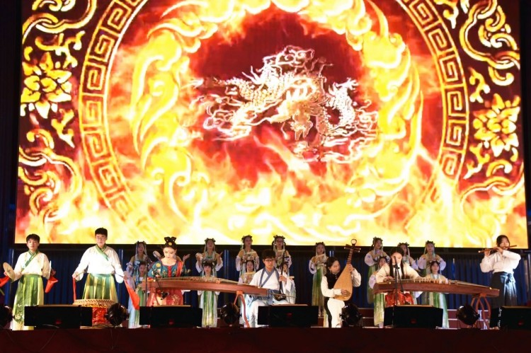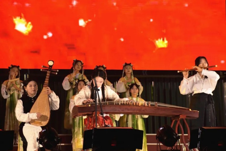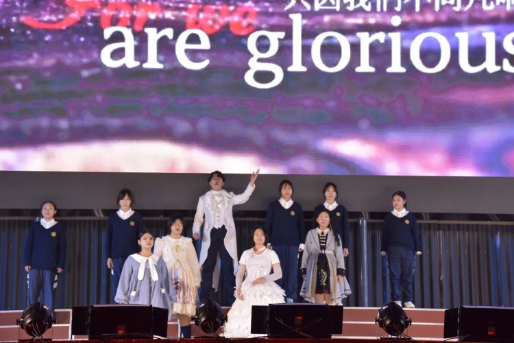 第三篇章“扬帆起航破浪前行”。竖琴独奏《redmerengue》空灵飘逸,中华文化串烧《华彩流变 舞韵中华》将武术、说唱与变脸艺术相结合,极具舞台震撼;《最好的未来》以词达意,全体英华人共绘一曲英华未来辉煌之路的赞歌。