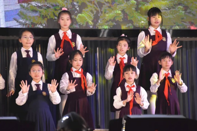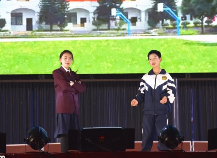 校友送祝福视频开启“砥砺奋进桃李芬芳”的第二篇章。《金蛇狂舞》乐曲旋律昂扬、锣鼓铿锵有力,将晚会的欢腾气氛渲染得更加热烈;音乐剧《this is me》演绎了少年的寻梦之旅;合唱《送你一个梦想》童声嘹亮,带给孩子们勇气去实现梦想;独具特色的民族舞蹈,演绎少数民族的独特风采;《教师风采》、《只为梦想》由教师传递相信梦想,为梦坚持的成长之路;古典舞《宴乐》舞影华光,韵动四方,引领我们穿越千年的时光长河;校史知识互动问答,将晚会的气氛推向高潮。