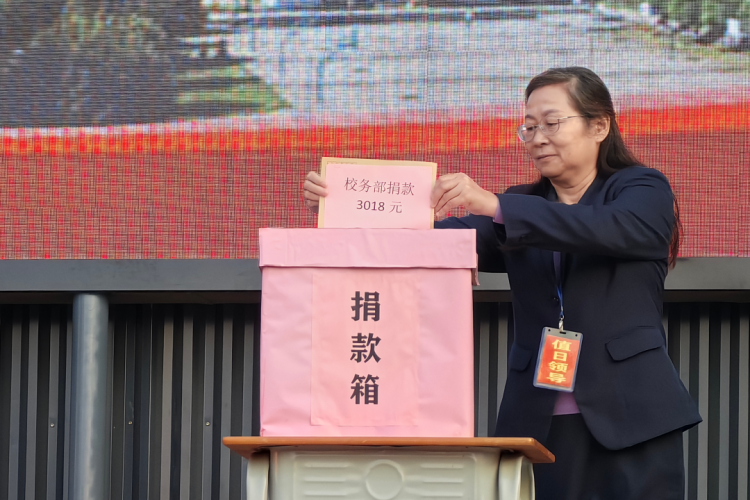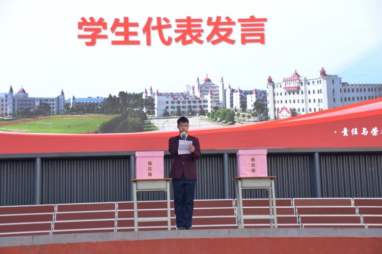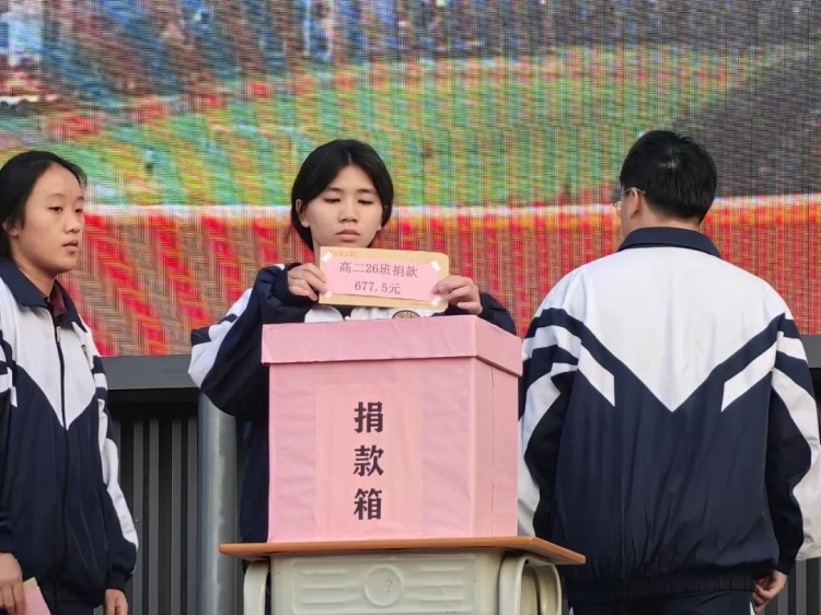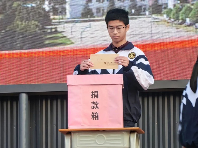 高二(8)班李智贤同学作为学生代表发言。表示一方有难,八方支援,捐款的意义不仅仅在于物质上的帮助,更在于精神上的支持和鼓励,每一份捐款都是对张同学的一份关心和祝福,希望全校师生的爱心能够汇聚成一股强大的暖流,温暖他的心灵,给予他战胜病魔的勇气和力量。