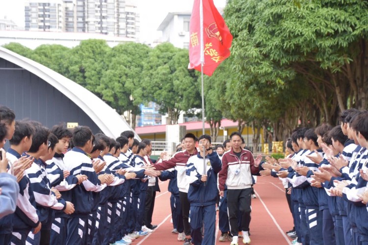 随着一声响亮的“出征”令下,体育健儿们英姿飒爽,踏上逐梦征程。高一、高二年级体育生整齐列队,击掌欢送,为师哥、师姐们加油鼓劲。