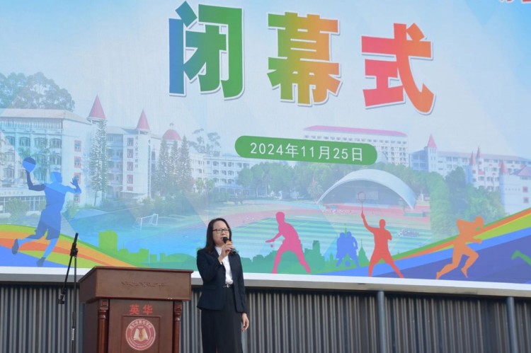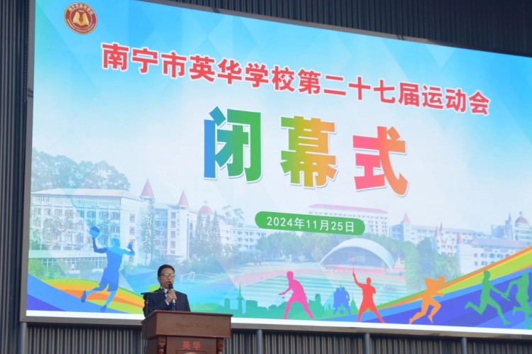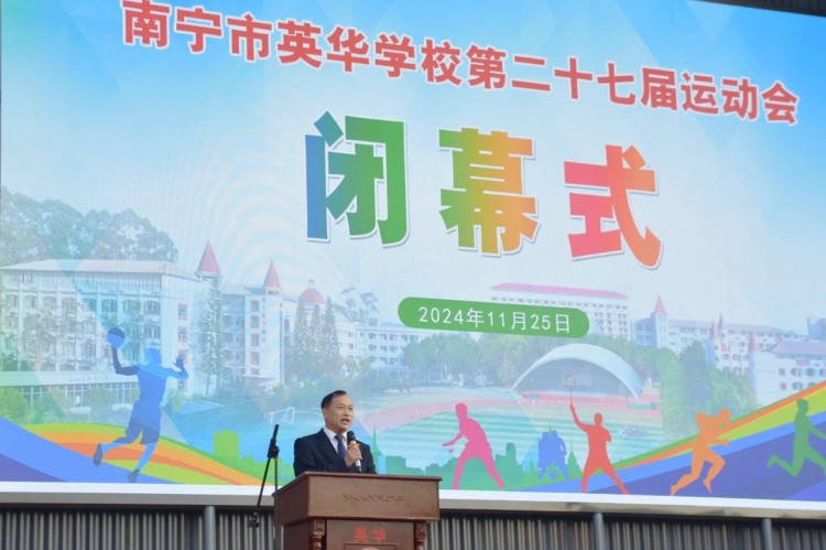 韦武平副校长致闭幕词。表示本次运动会是一次成功的体育盛会,通过运动会生动地展现了英华师生的良好精神风貌,加深了同学之间的友谊,增强了班级的凝聚力,也让我们深刻体会到了团队合作的重要性。体育精神永不落幕,希望同学们将这份热情与坚持带入到日常的学习和生活中,以更加饱满的热情,更加坚定的信念,迎接每一个新的挑战,以优异的成绩向学校建校30周年献礼。