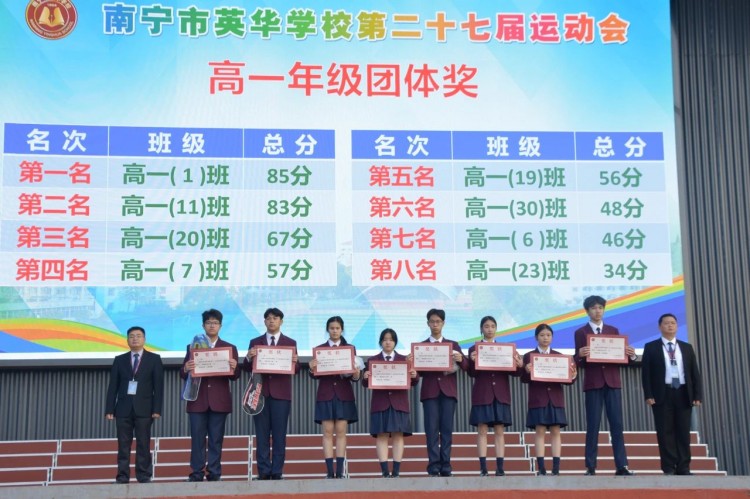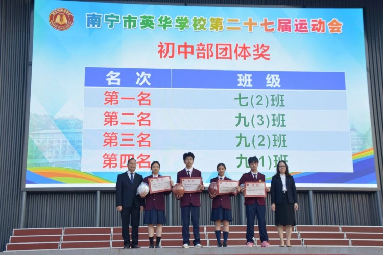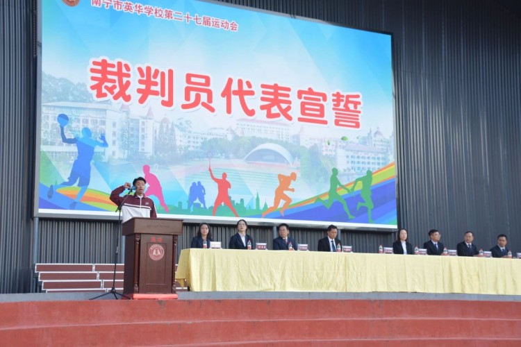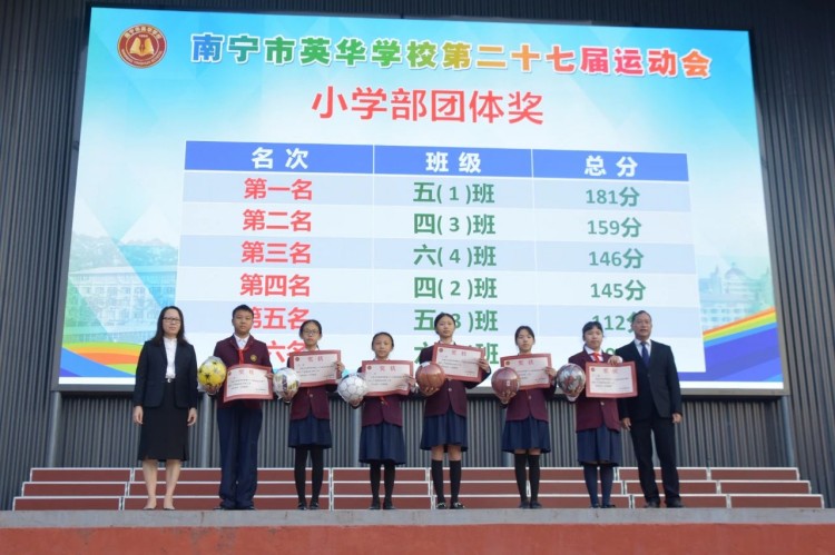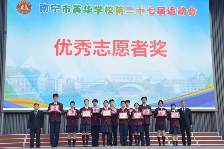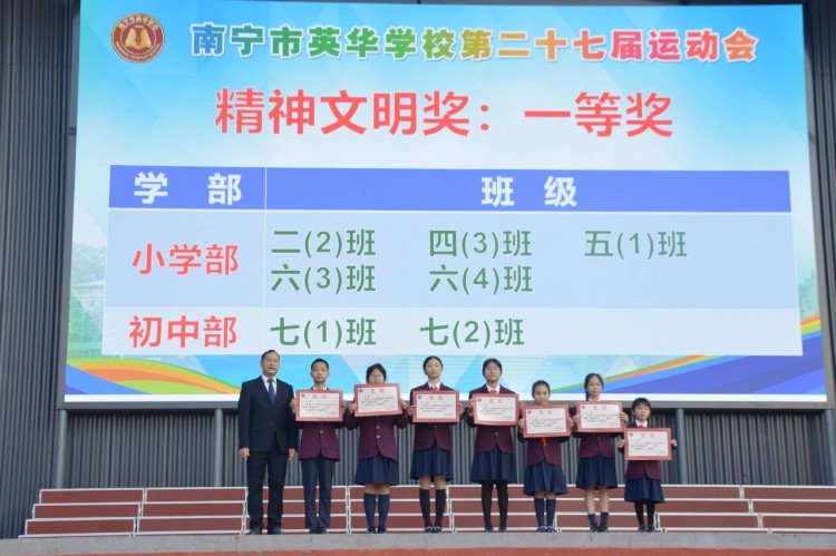 陈校长宣布:“南宁市英华学校第二十七届运动会闭幕”。