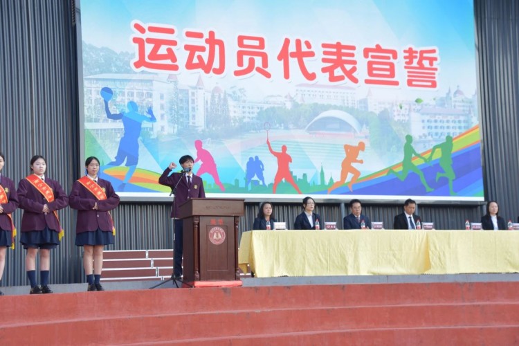 陈春丽校长致开幕词。提出健康的体魄是实现梦想的基石,体育运动可以强健体魄,锤炼意志,还有助于释放压力,调节情绪,对同学们的健康成长有着重大的影响。我校一直以来都非常重视体育教育,培养目标之一就是让学生拥有一副好身体,希望同学们以运动会为契机,挑战自我,超越自我,勇创佳绩,展现出良好的竞技风貌和组织纪律精神,更要养成终身体育锻炼的好习惯。