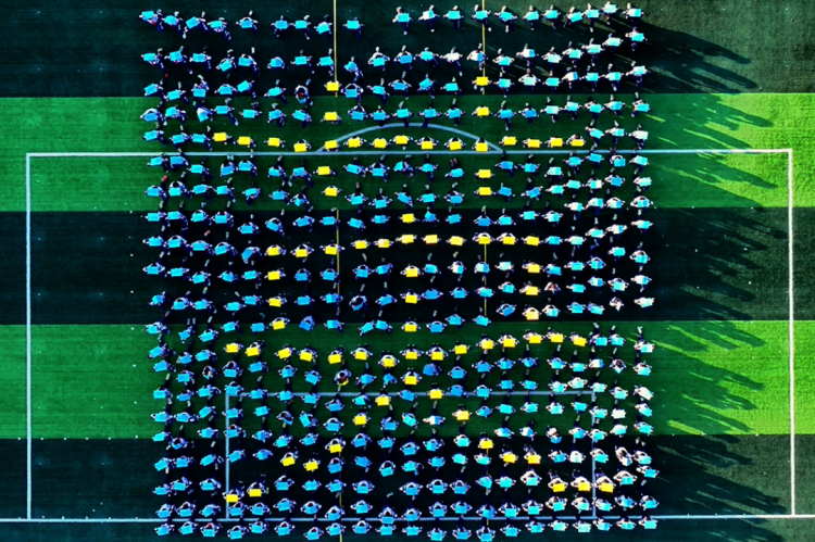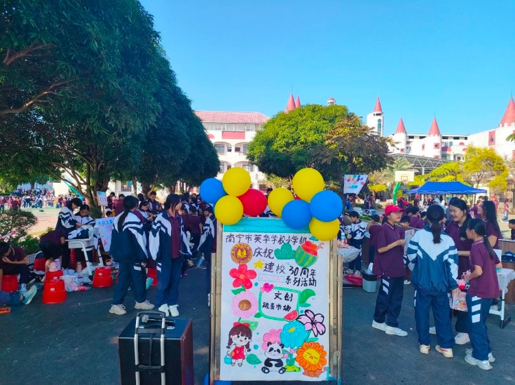 小学部的同学们用书本摆出英华1994-2024建校30周年字样