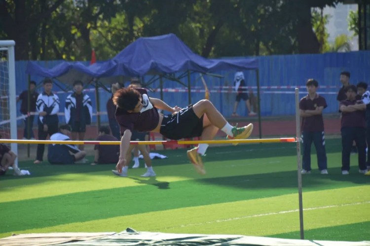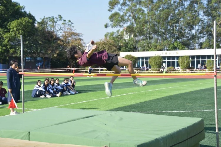 发令声响起,田径场上的跑步运动员身姿矫健,在红色赛道上风驰电掣,用速度诠释青春的激情;跳高运动员们犹如凌空的雄鹰,不断挑战自我,追求极限;跳远运动员奋力起跳,果敢一跃;投掷铅球的运动员挥动着充满力量的手臂,将铅球在空中划过一道优美的弧线……无不在追求极限,突破自我。